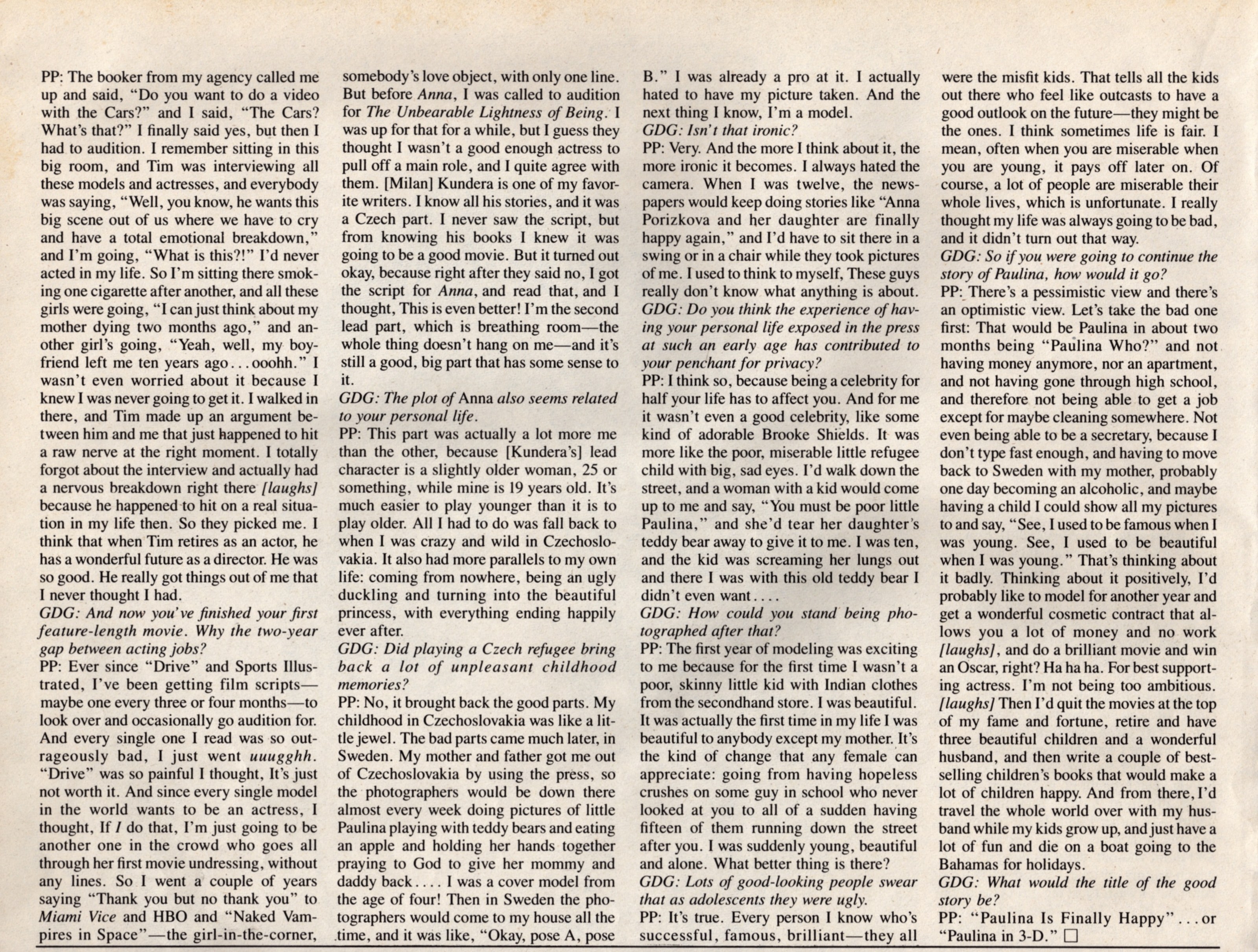 This is an interesting interview. Paulina's childhood was even worse than I had read! It is kind of sad the way she says Father #3. This helps me understand her personality better.
