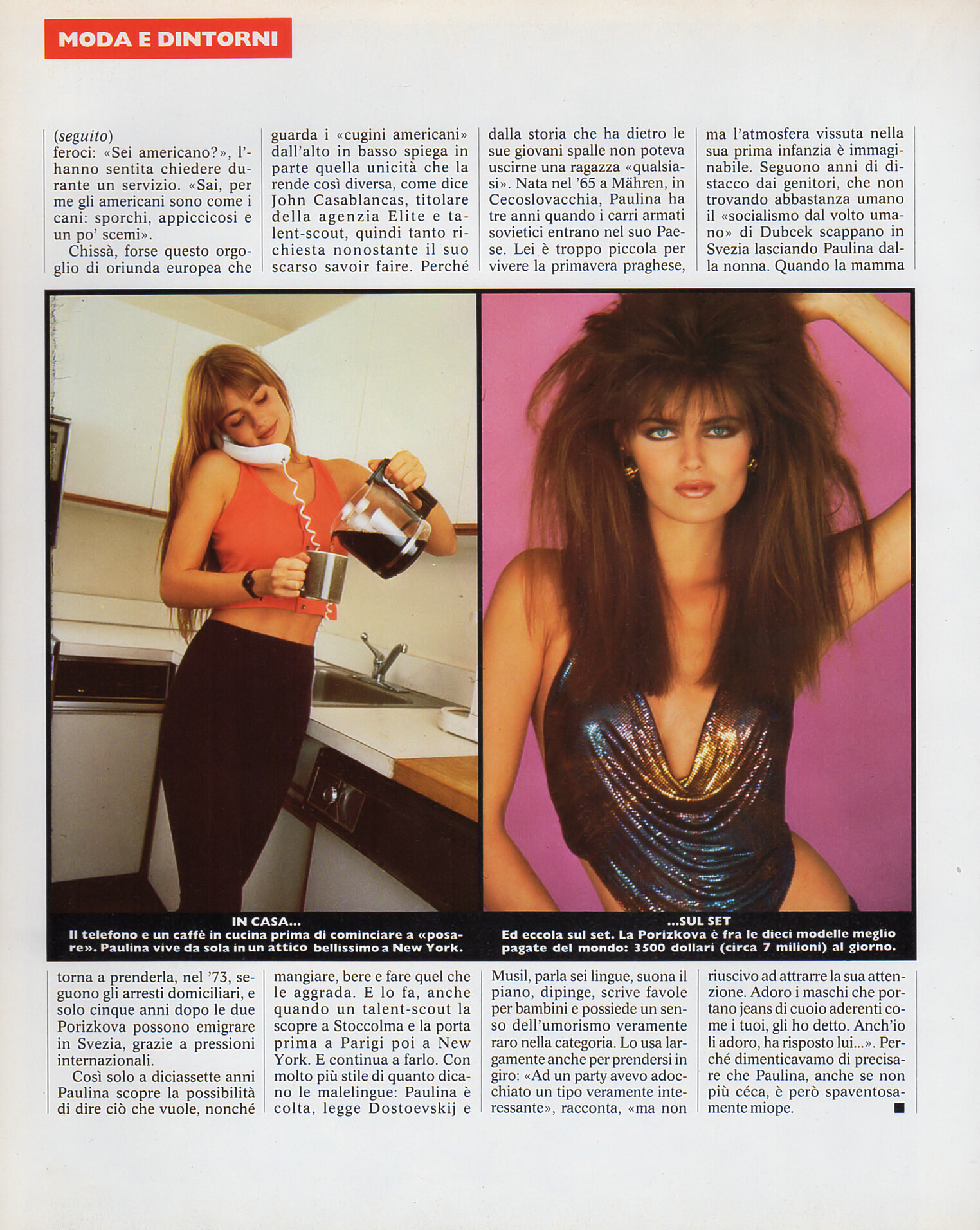contents + "NON SONO POI QUESTO GRANCHE" - MODA Italy October 1985 #23 by E. J. Camp, Guadrini - also showing Kelly LeBrock, Lucrezia Lante, Catherine Deneuve