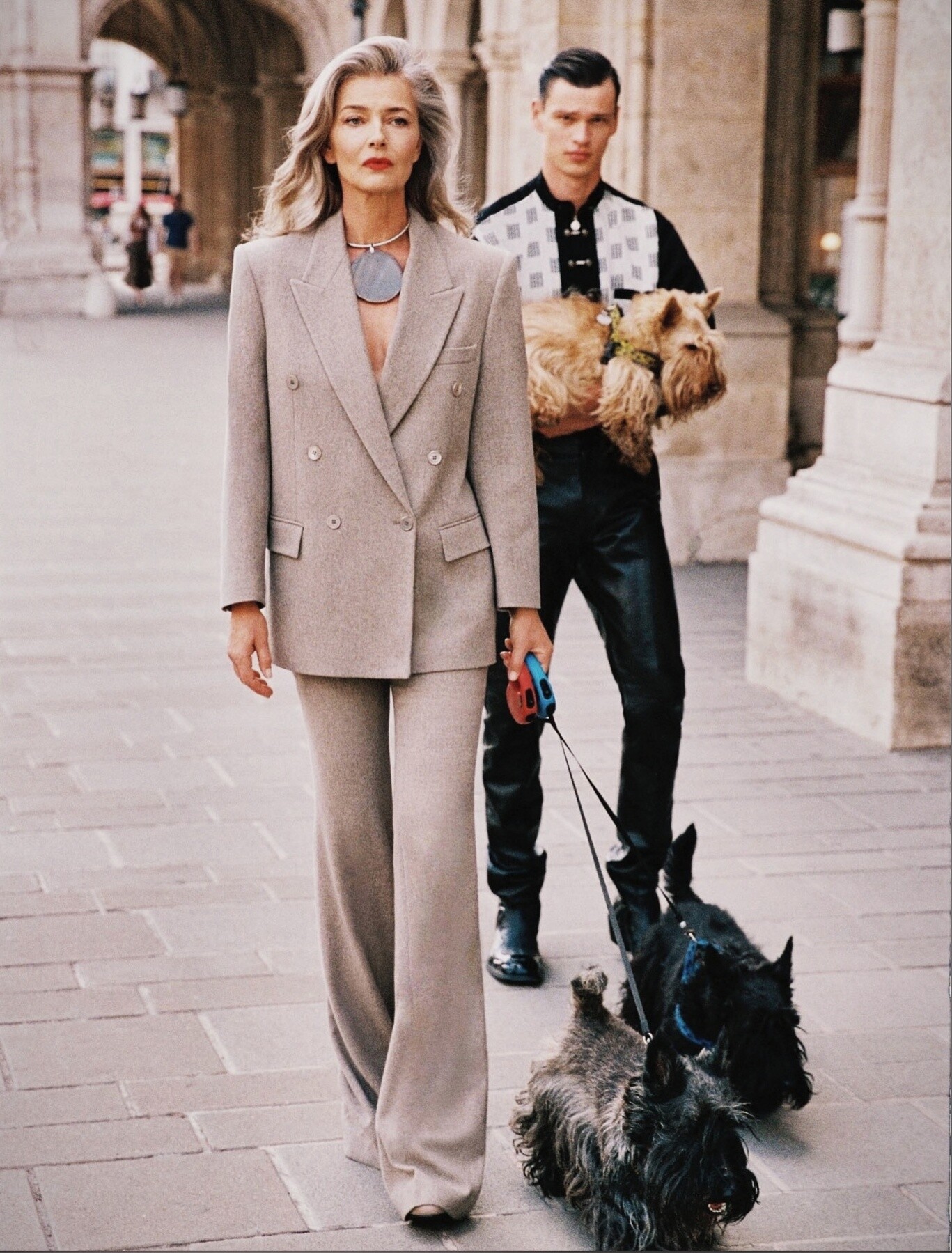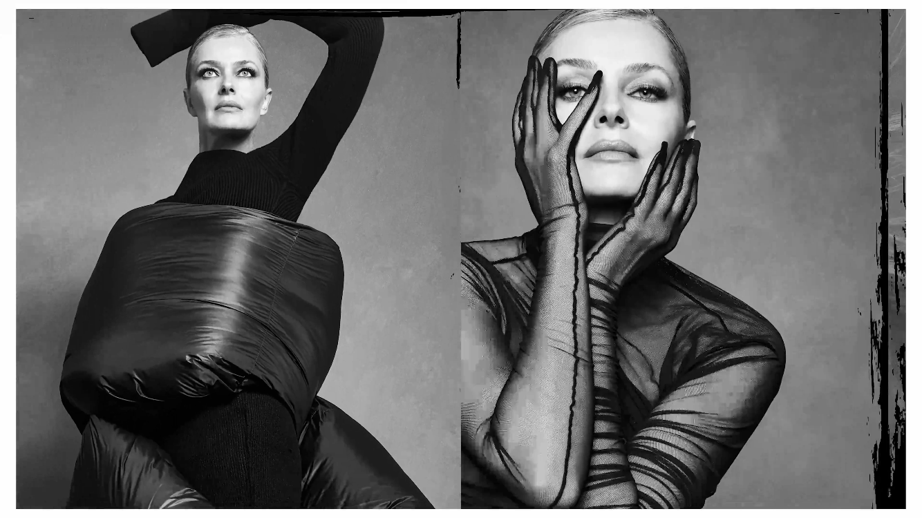 Paulina Porizkova with Philip Hrivnak for Vogue Portugal "The Fame Issue" October 2023 by Branislav Simoncik