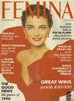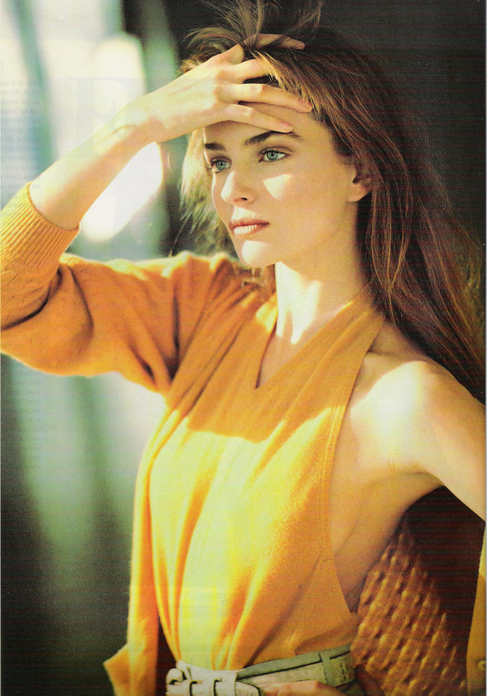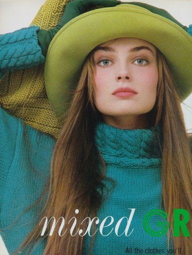 The Paulina pictures in green are from Mademoiselle. I used to have that issue, but I don't have it any longer. So I cant tell the year or the month. But it must be around 1988. The editorial's name was Mixed Greens.