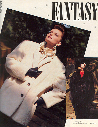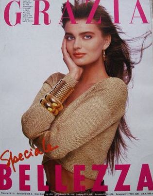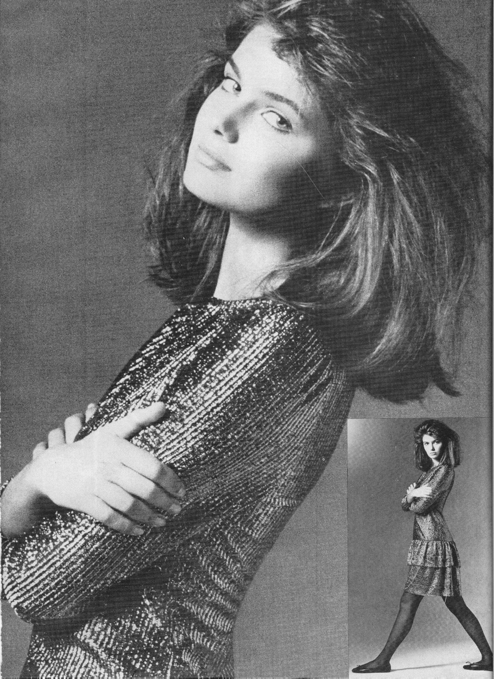 My scan from Vogue US, may 1991. I scanned the picture with two different settings but the original piture is a bit blurry.There is only one picture of her in that story.