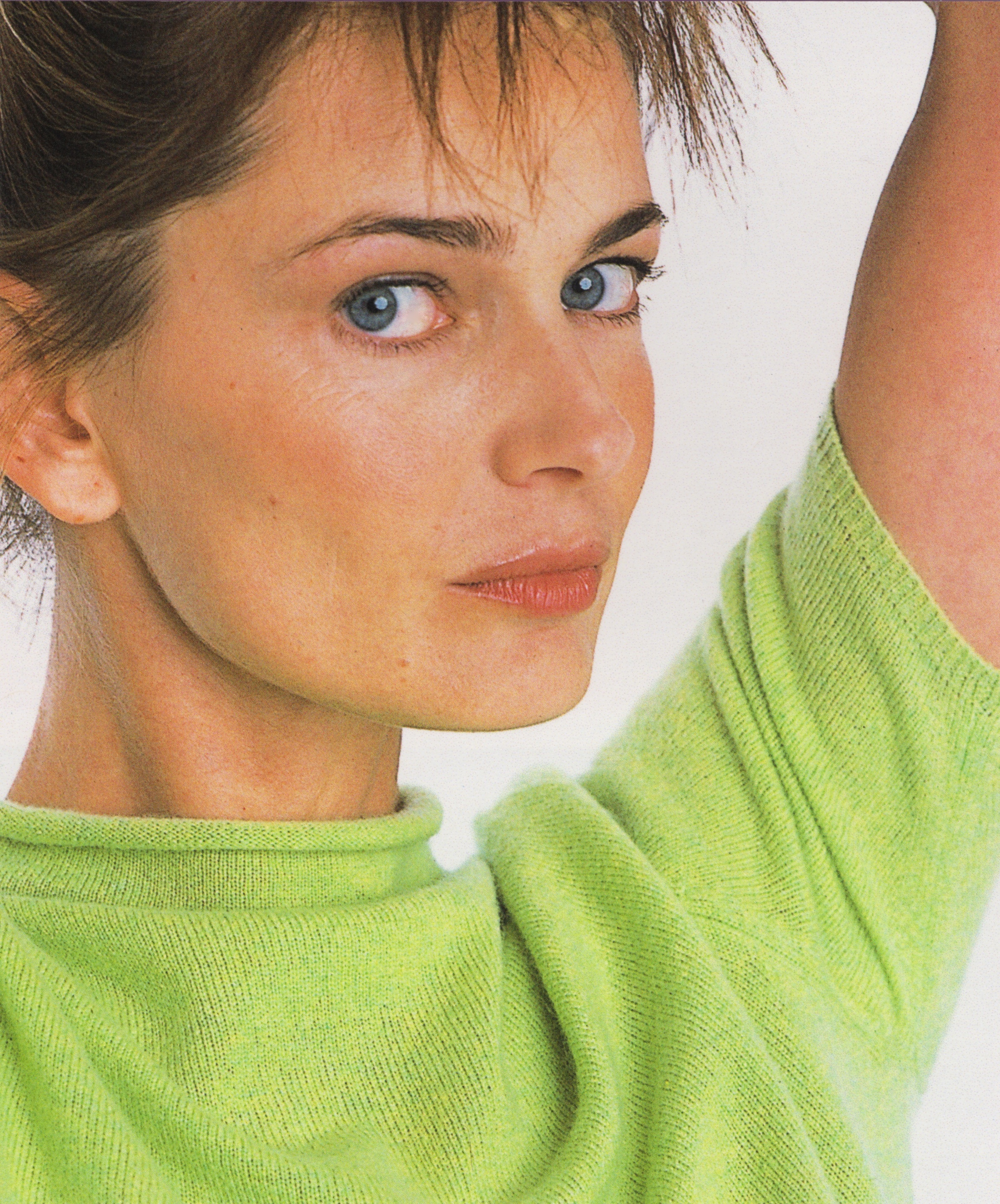 I saw her in the september 1985 issue of Vogue US for the first time. Today I think she can be compared to Valentina Zelieva perhaps(she has a dignified appearance as Paulina has), and as for the Estee girls neither Caroline Murphy nor Liz could hold her a candle. Hillary comes closer to her more than the other two ever did. But I am strongly convinced that Paulina was peerless at her time. She doesn't have a perfect face if you look carefully. Her chin is too square and her lower chin really weak, her legs are short for her height. But on the whole she is very very very beautiful. She sure knows how to pose and she uses her eyes very well. Her gaze captivates me (and you all, I think). Below I am posting an interview with her.