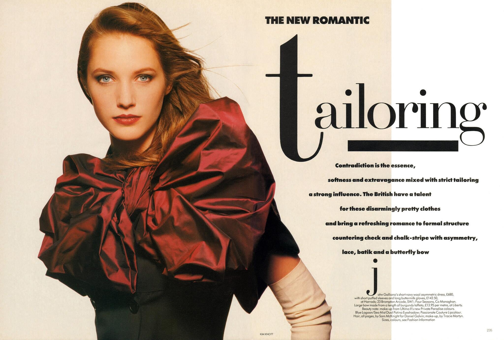 UK Vogue April 1988 "The New Romantic Tailoring" Photographer: Kim Knott Hair: Sam McKnight Makeup: Tracie Martyn