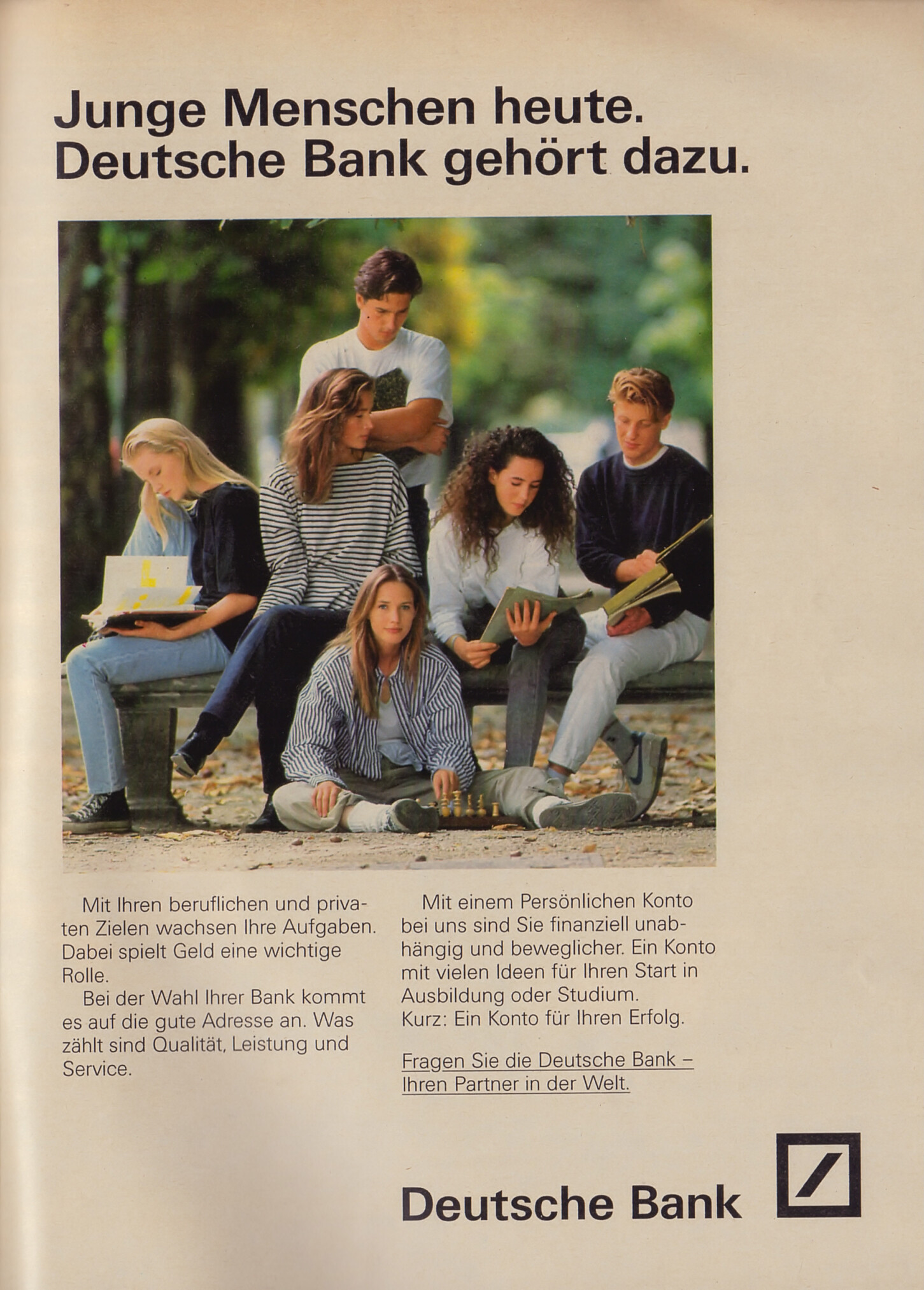 Deutsche Bank advertisement - COSMOPOLITAN Germany August 1989 - also showing Julia, Suzanne Lanza, unknown