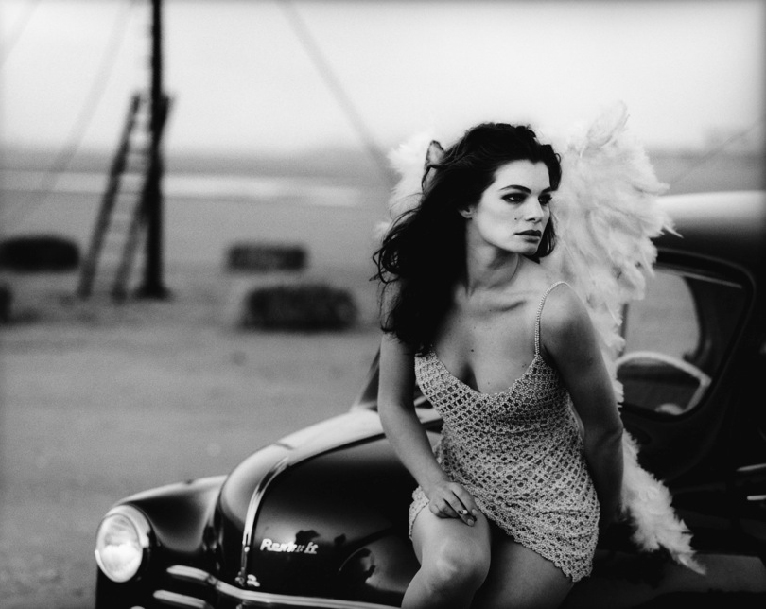 Vogue Paris, May 1989: "Désir d'Ailes" ("Wings of Desire"; fashion editorial inspired by Wim Wenders film of the same name, 1987). Photography: Peter Lindbergh. Hairdressing: Julien d´Ys. Model: Cordula Reyer.