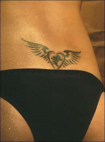 Tramp stamp vs... I believe Isabeli's is an ode to her son or something. Regardless I'm not a big fan of the tacky whorish tramp stamps that girls get on their lower back right above their asscrack. It's like a big target that draws men's attention to that general area. What is Ana so insecure about her sexuality and her lack of an ass that she needs to accentuate the area and draw more attention to it.