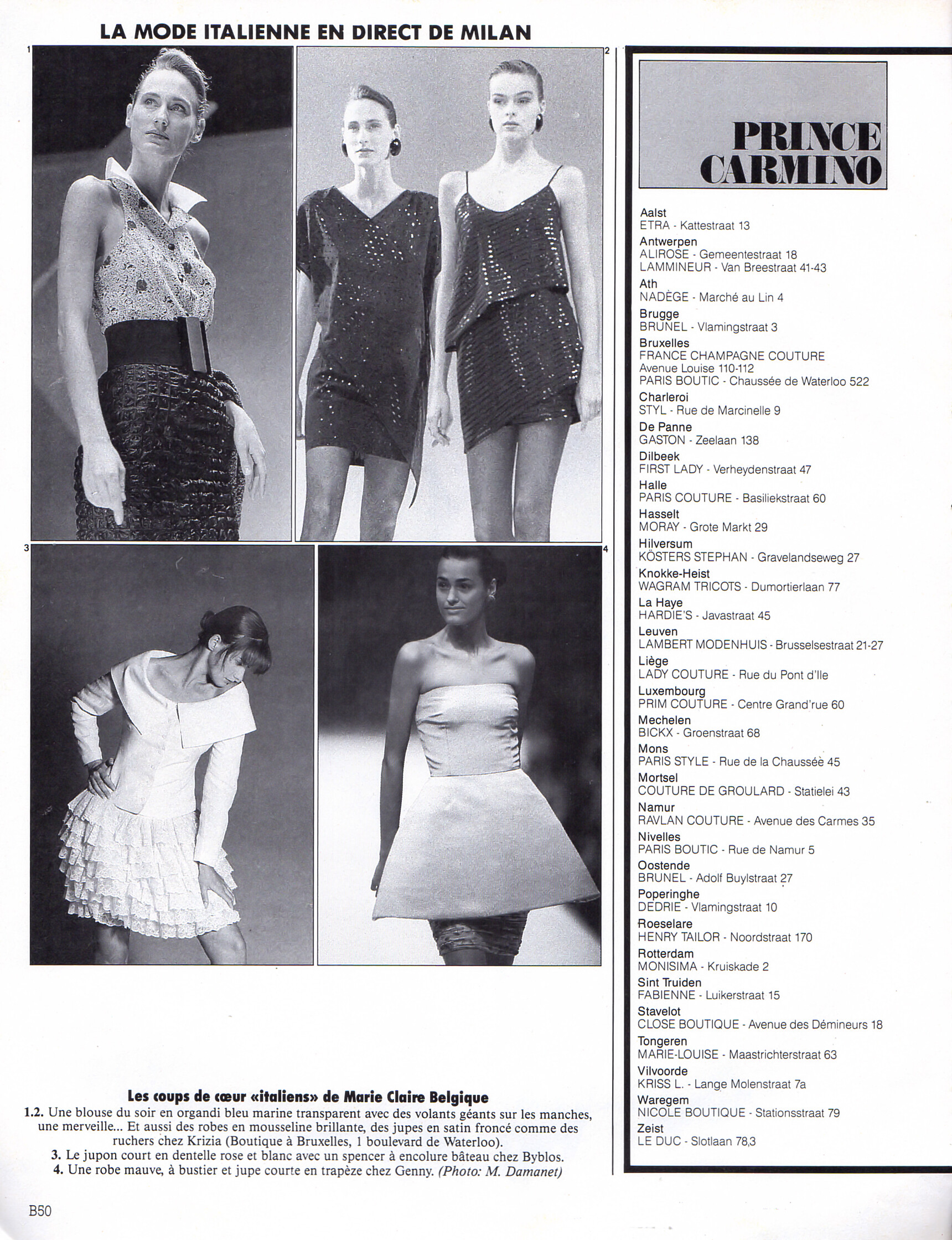 "LA MODE ITALIENNE EN DIRECT DE MILAN" - marie claire Belgium February 1988 #426 (supplement inside marie claire France February 1988 #426) - also showing Beth Stonehouse, Toko Tokuko Togashi, Carla Bruni, Daniela Azzone, Clair Glover, Micheline van de Velde, Dragana, Marpessa Hennink, Fatine Baryane, Amalia Vairelli, Roberta Capua, Samantha Stratton, unknown