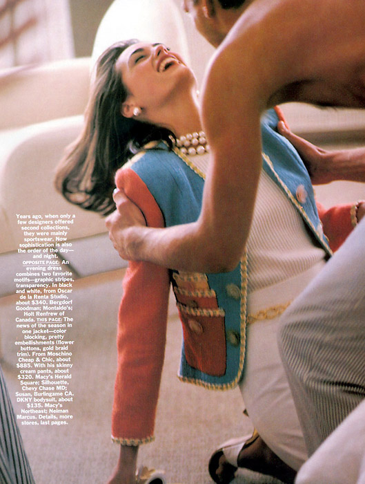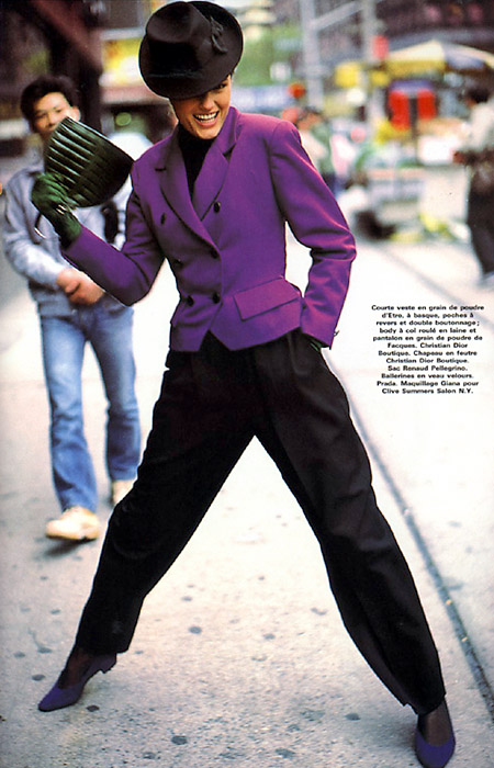 Vogue Paris October 1988"Les vestes prennent des couleurs" Photographed by Arthur Elgort Source: www.yasminlebon.net