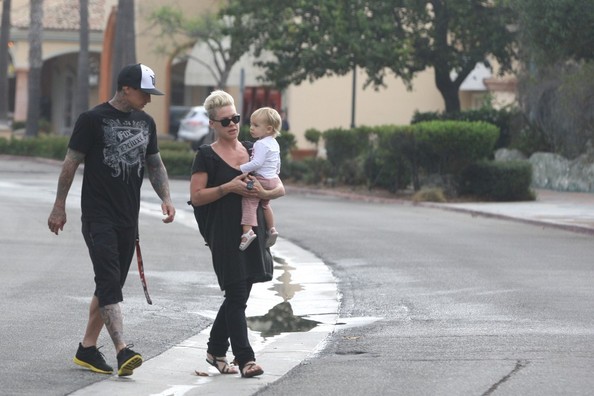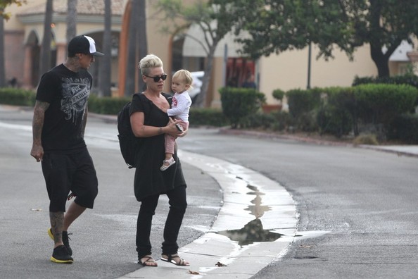 Pink (Alecia Beth Moore) husband Cary Hart and daughter Willow smile there way to starbucks in Malibu,Ca.