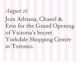 Makeup artists will give makeovers, and you can meet VS supermodel Adriana Lima.