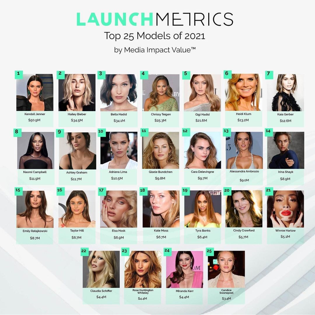 I can't say i completely understand how they measure the Value or what are their criterias to measure the values of models but it seems a very complex and unusal method to me. If i understand correctly that $M's represent estimated worth of the models in 2021 and resulted by quite unique formula, includes social media posts and overall media publications.