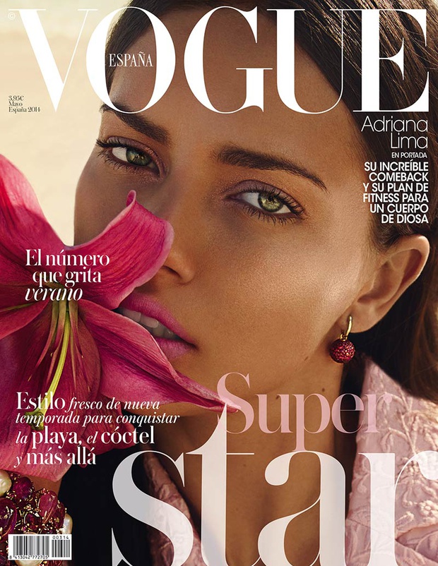 Brazilian model Adriana Lima has landed herself another Vogue cover. This time she's on the cover of Vogue Spain's May 2014 issue, which has just surfaced on the forums only moments ago. This is Lima's second cover of Spanish Vogue (the beauty fronted the June 2010 issue). Miguel Reveriego was the cover shoot photographer of choice this monthand Vogue Spain's fashion director Belan Antolin styled the romantic looking shoot