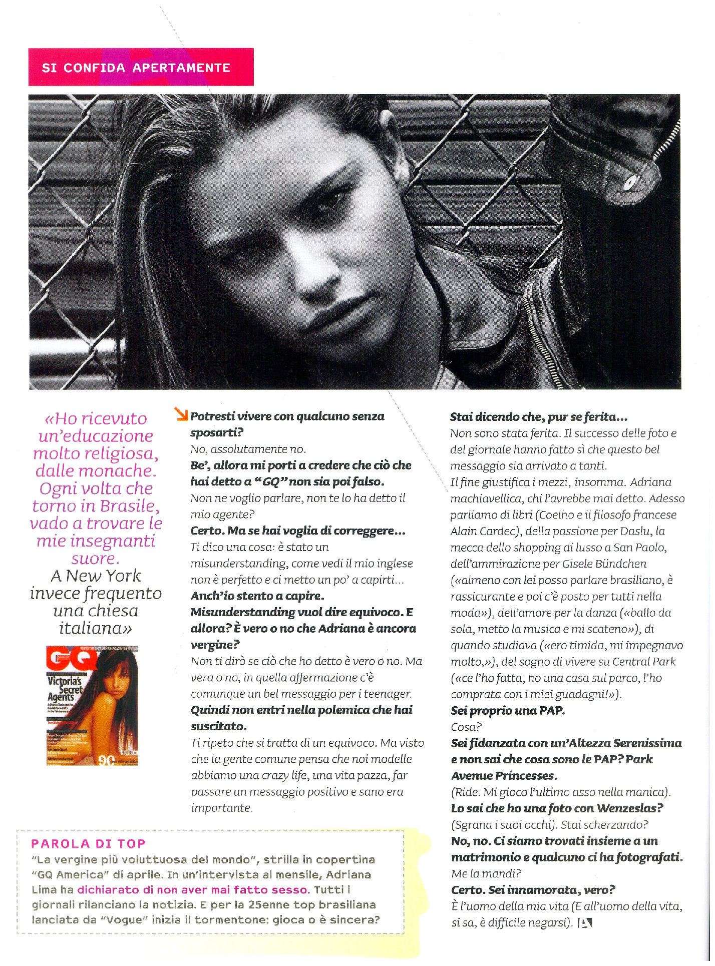 Thanks I still love and admire Adriana. I'm not dissapointed because I was a bit skeptical when she did the GQ interview. Her being a virgin or not is non of my business and its good she came out and told the truth. Good Job Adriana!