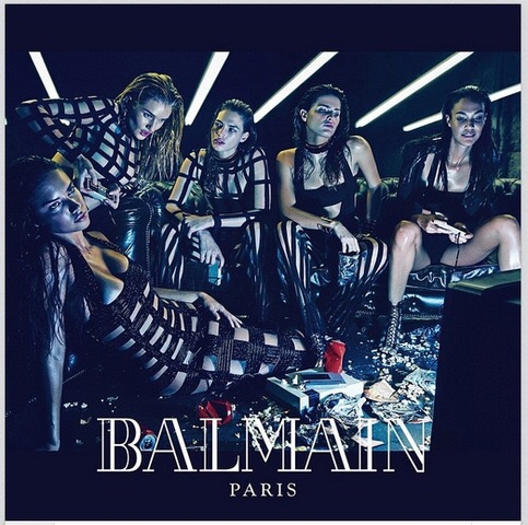 FAST AND FURIOUS: Olivier Rousteing serves up hot models — and a side order of fries in a Styrofoam container — in his spring campaign for Balmain. While dressed to the nines in the French brand’s clingy and cutout-riddled collection, Adriana Lima, Joan Smalls, Rosie Huntington-Whiteley, Isabeli Fontana and Crista Cober are depicted playing video games — popcorn scattered about the floor — and scarfing burgers on a diner banquette.