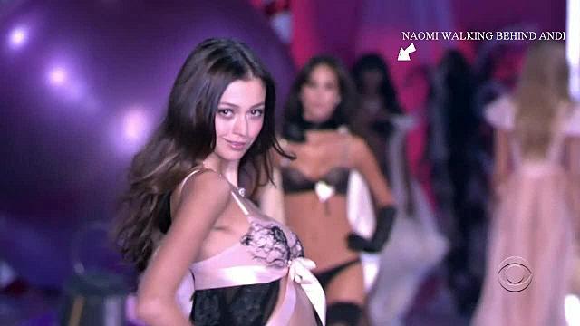 In this shot, Naomi Campbell can be seen walking behind Andi