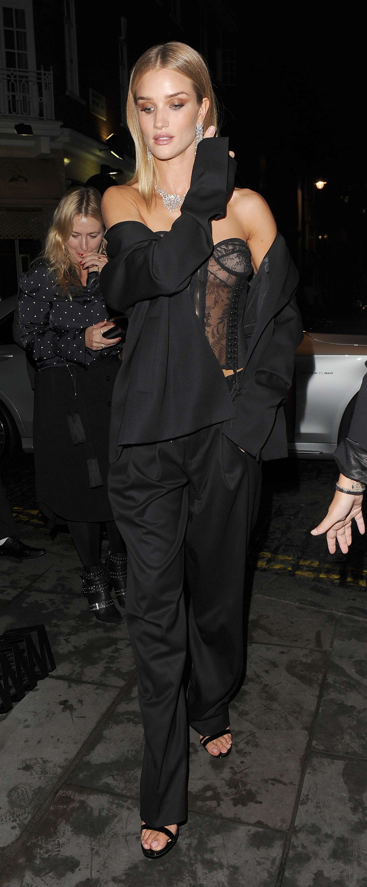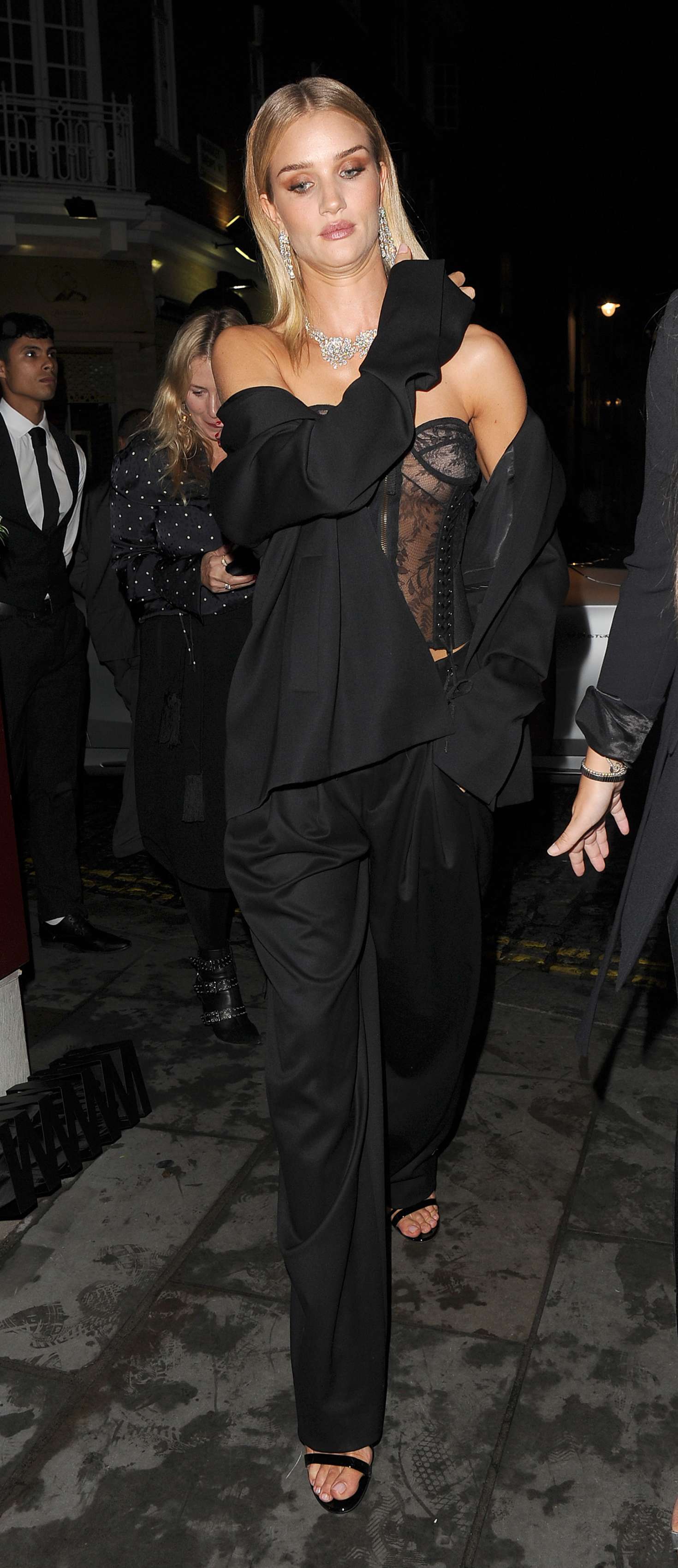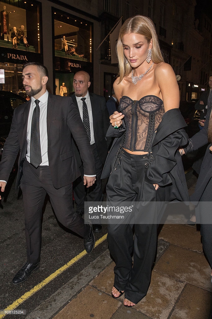 Model behaviour! Rosie Huntington-Whiteley, 29, proved exactly why she is the darling of the fashion world as she left London's Soho Hotel on Tuesday night.