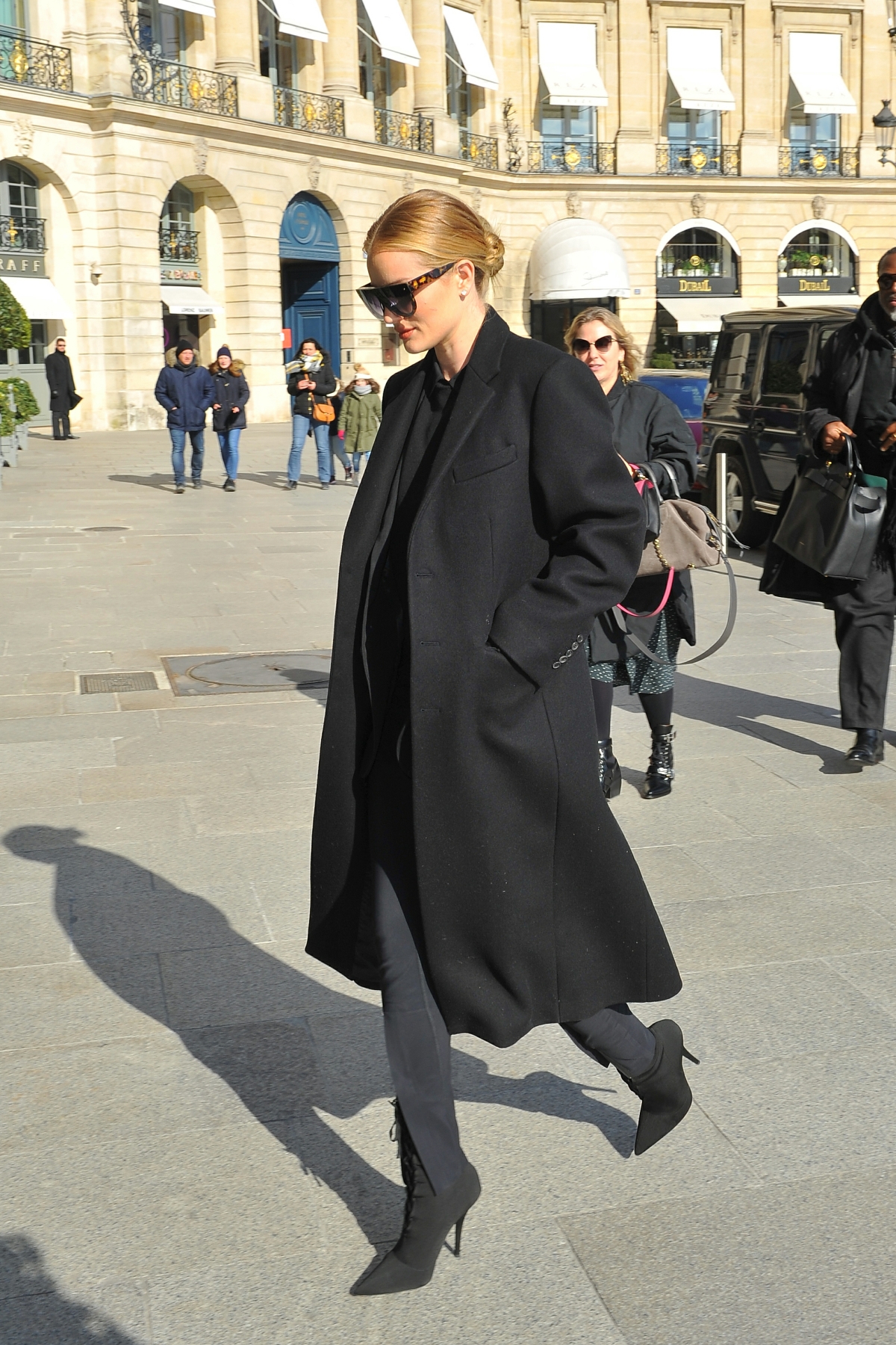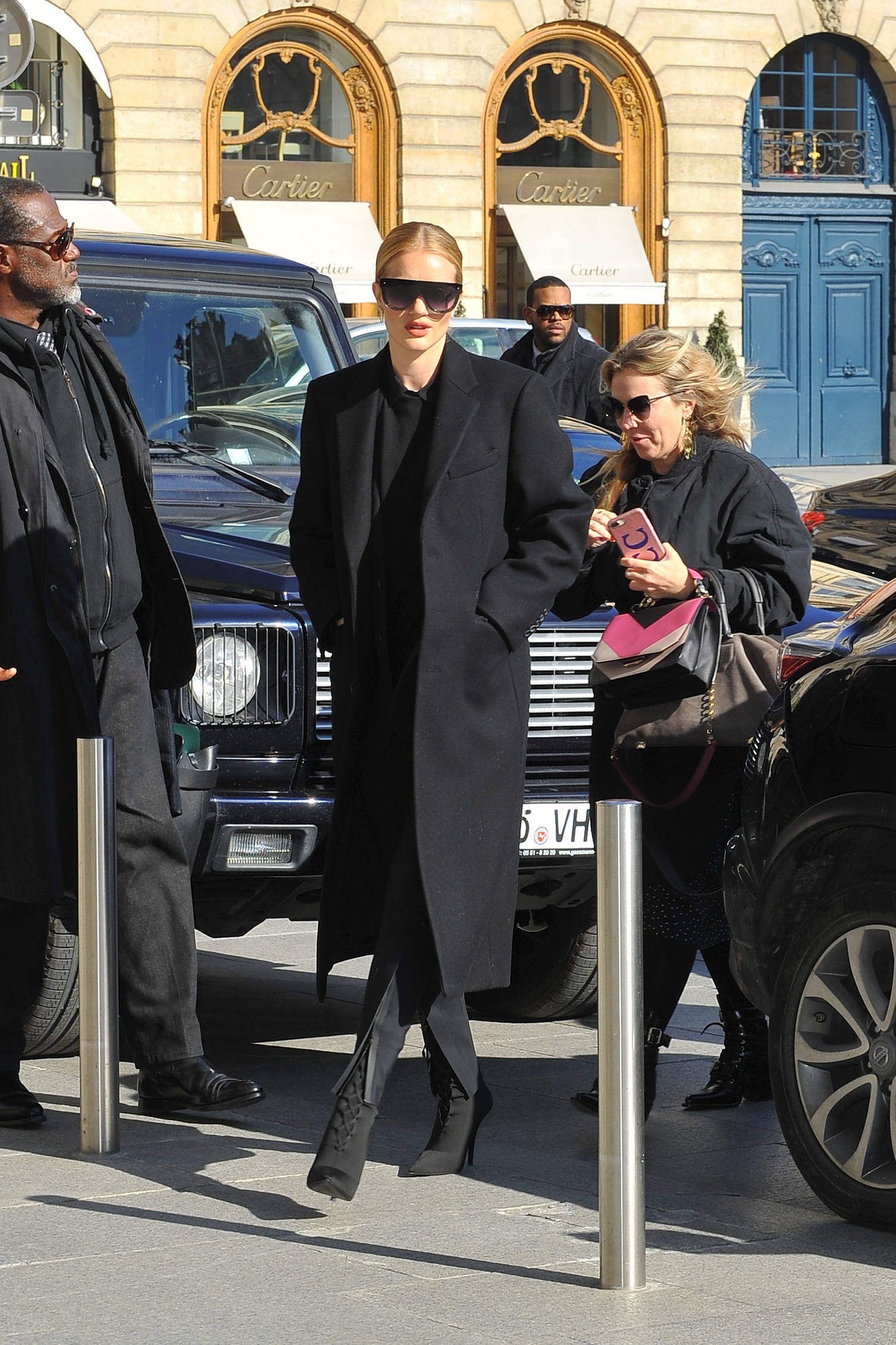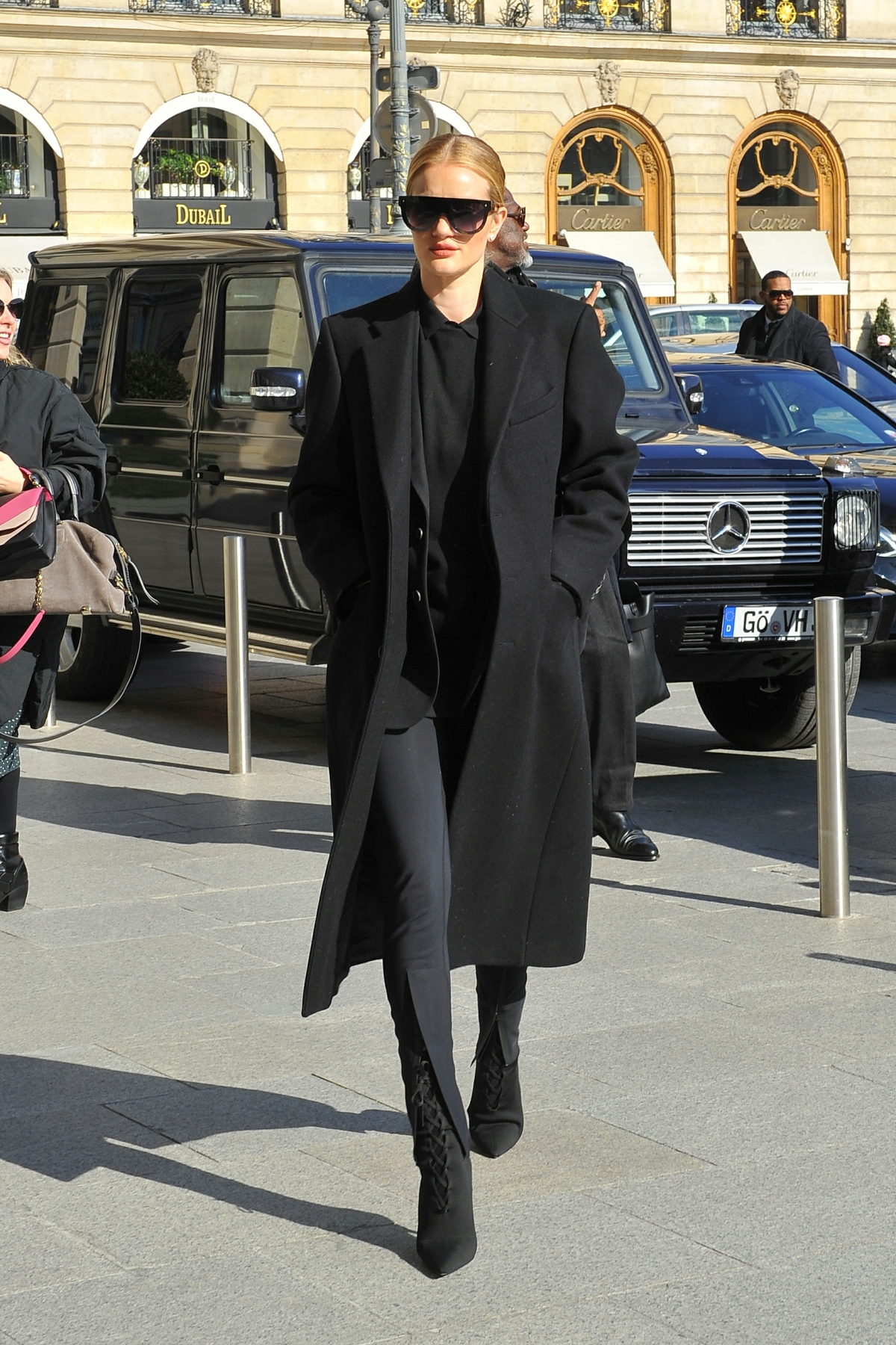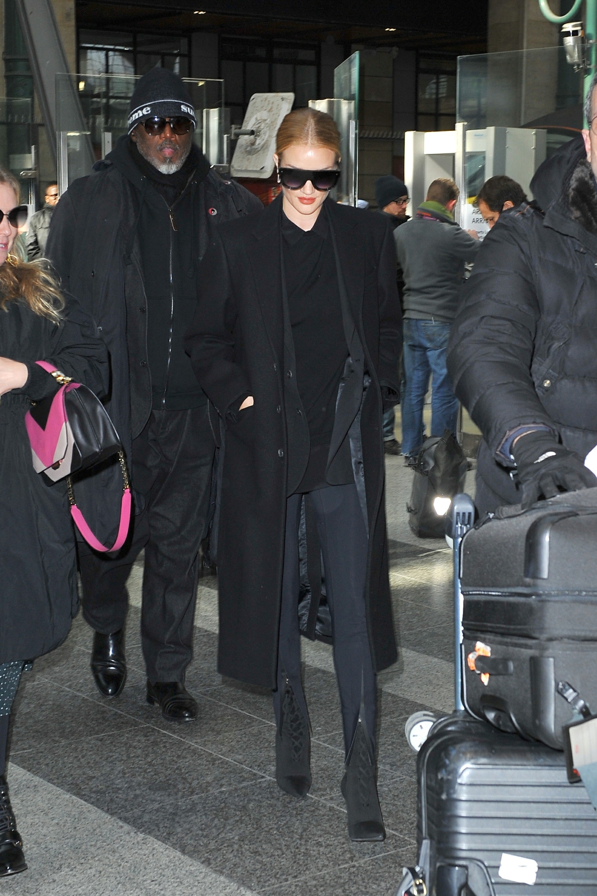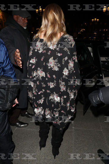 Model and actress Rosie Huntington Whiteley is seen at Gare du Nord station on February 28, 2018 in Paris, France.