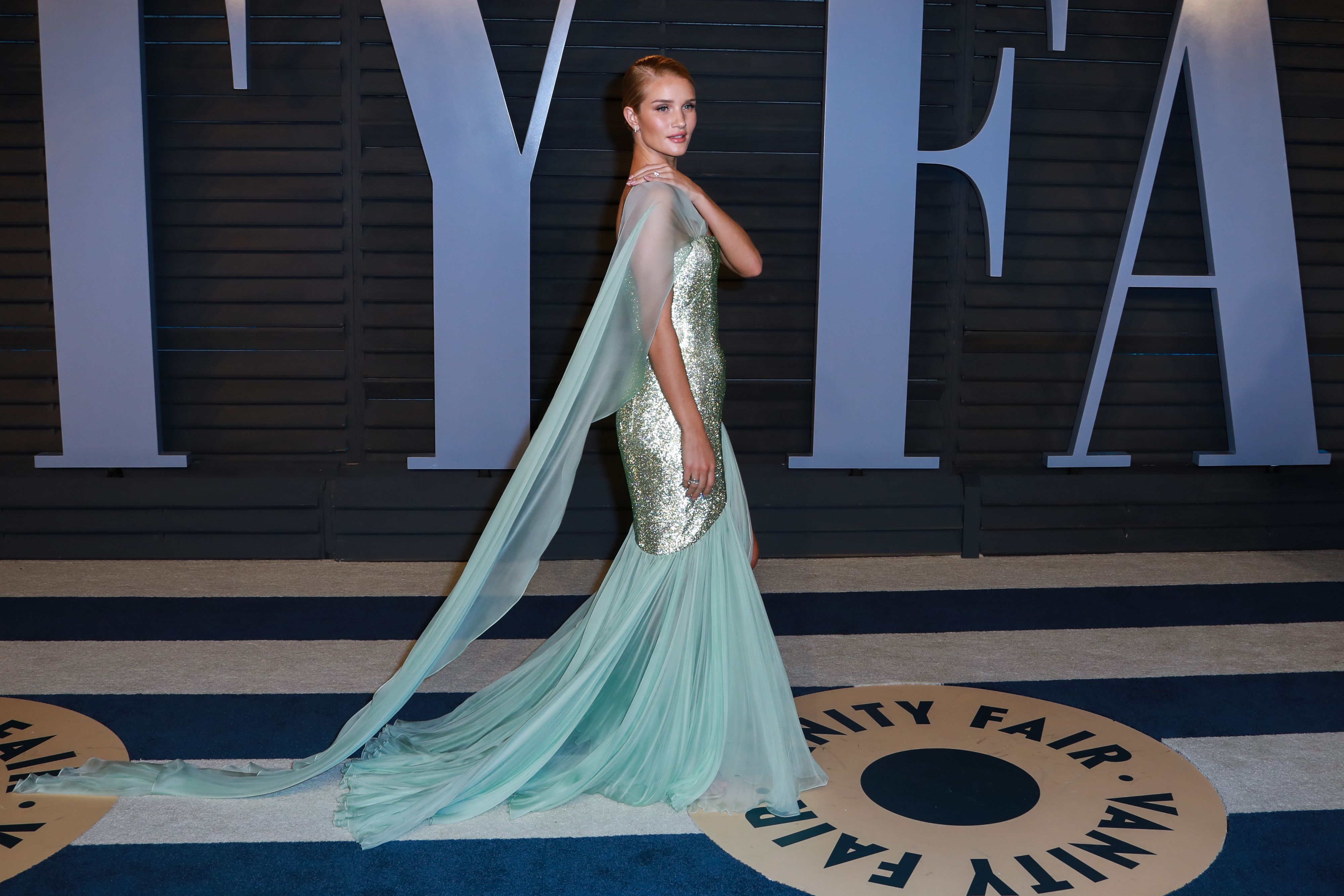 Rosie Huntington-Whiteley attends the 2018 Vanity Fair Oscar Party hosted by Radhika Jones at Wallis Annenberg Center for the Performing Arts on March 4, 2018 in Beverly Hills, California
