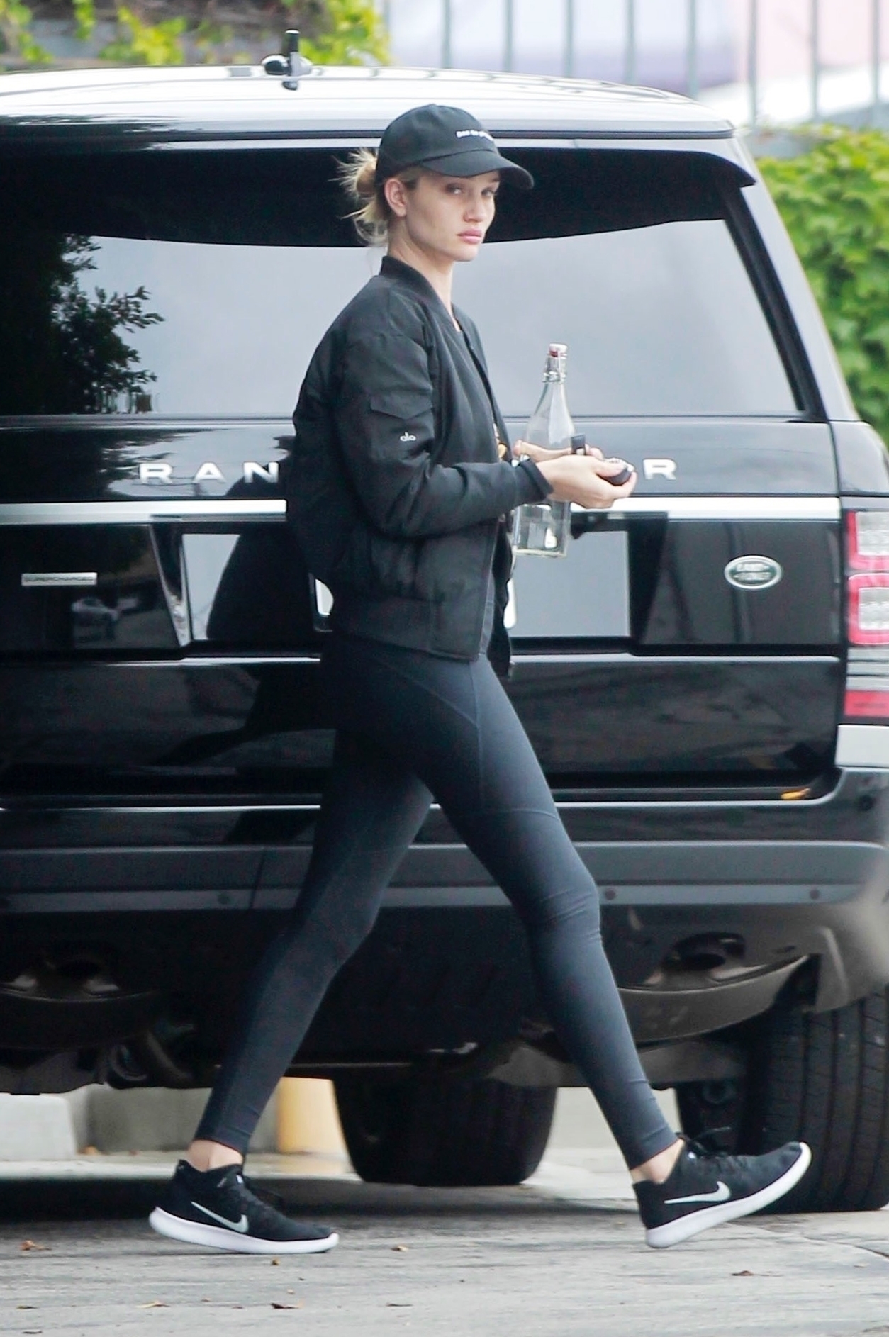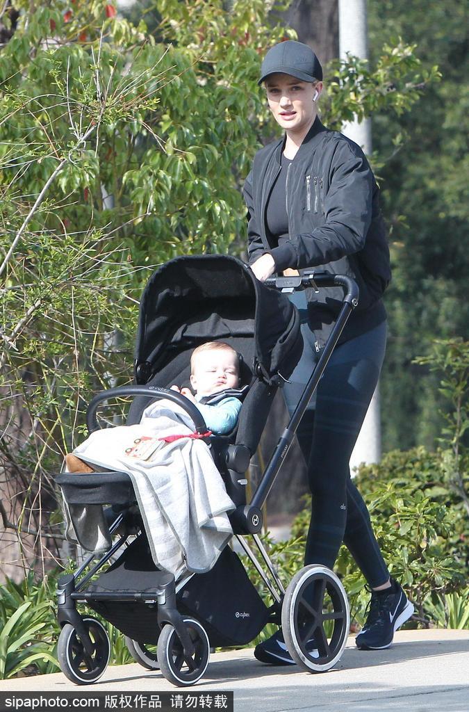 Rosie Huntington-Whiteley looked like a model mother while taking little Jack Oscar Statham, ten months, for a walk around their Beverly Hills neighborhood on Wednesday, March 25, 2018.