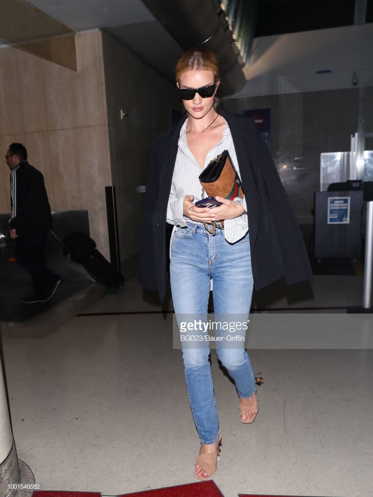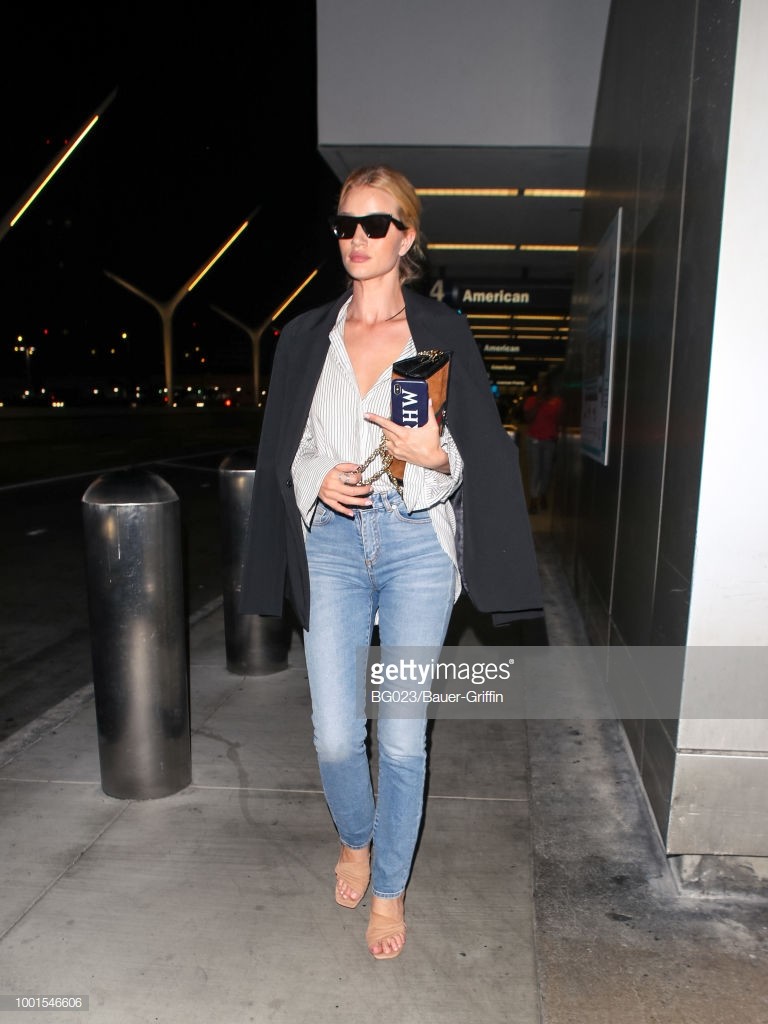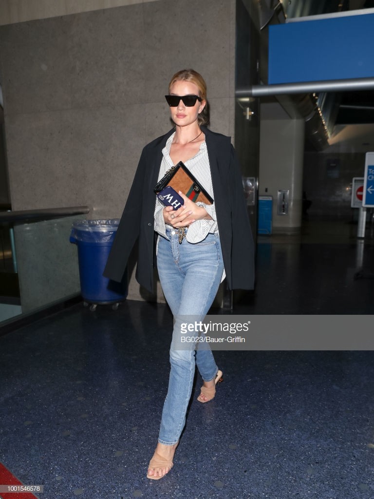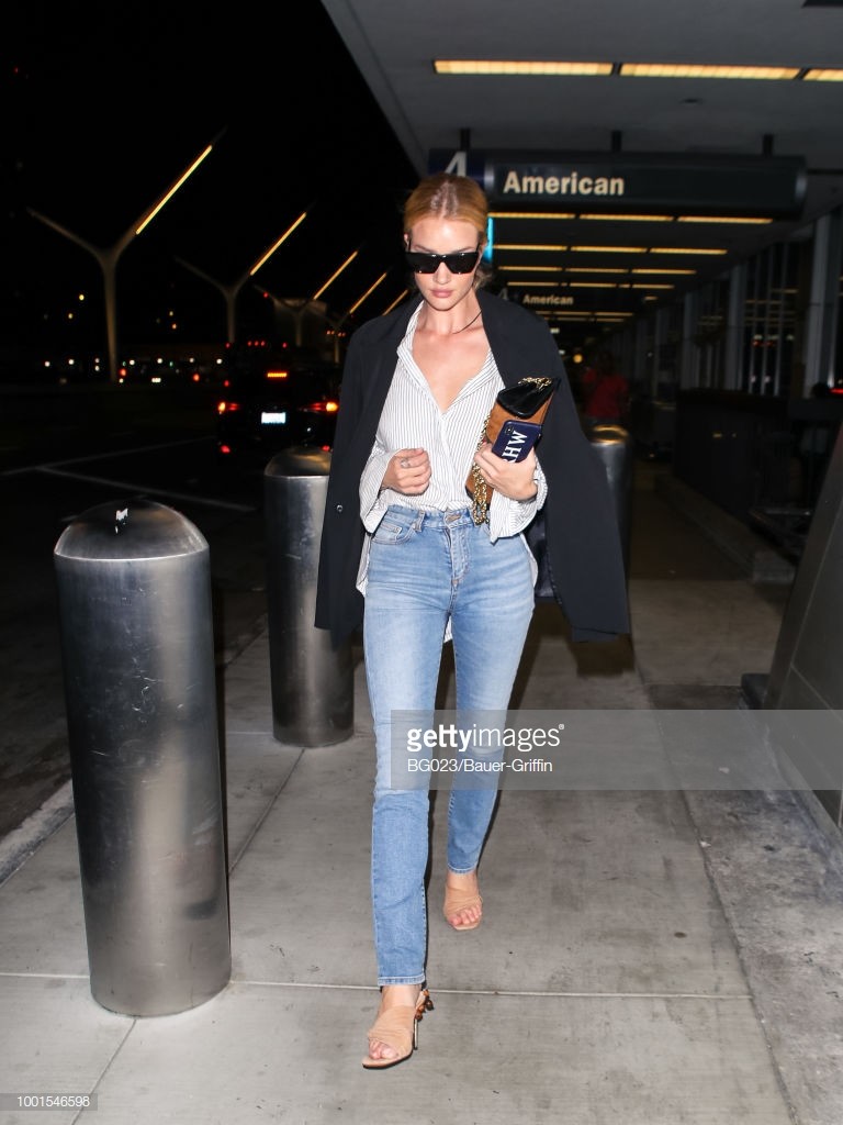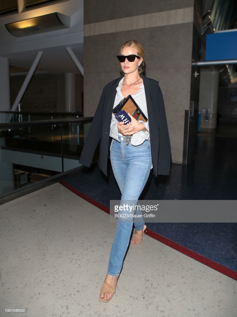 Rosie Huntington-Whiteley is seen at Los Angeles International Airport on July 19, 2018 in Los Angeles, California.
