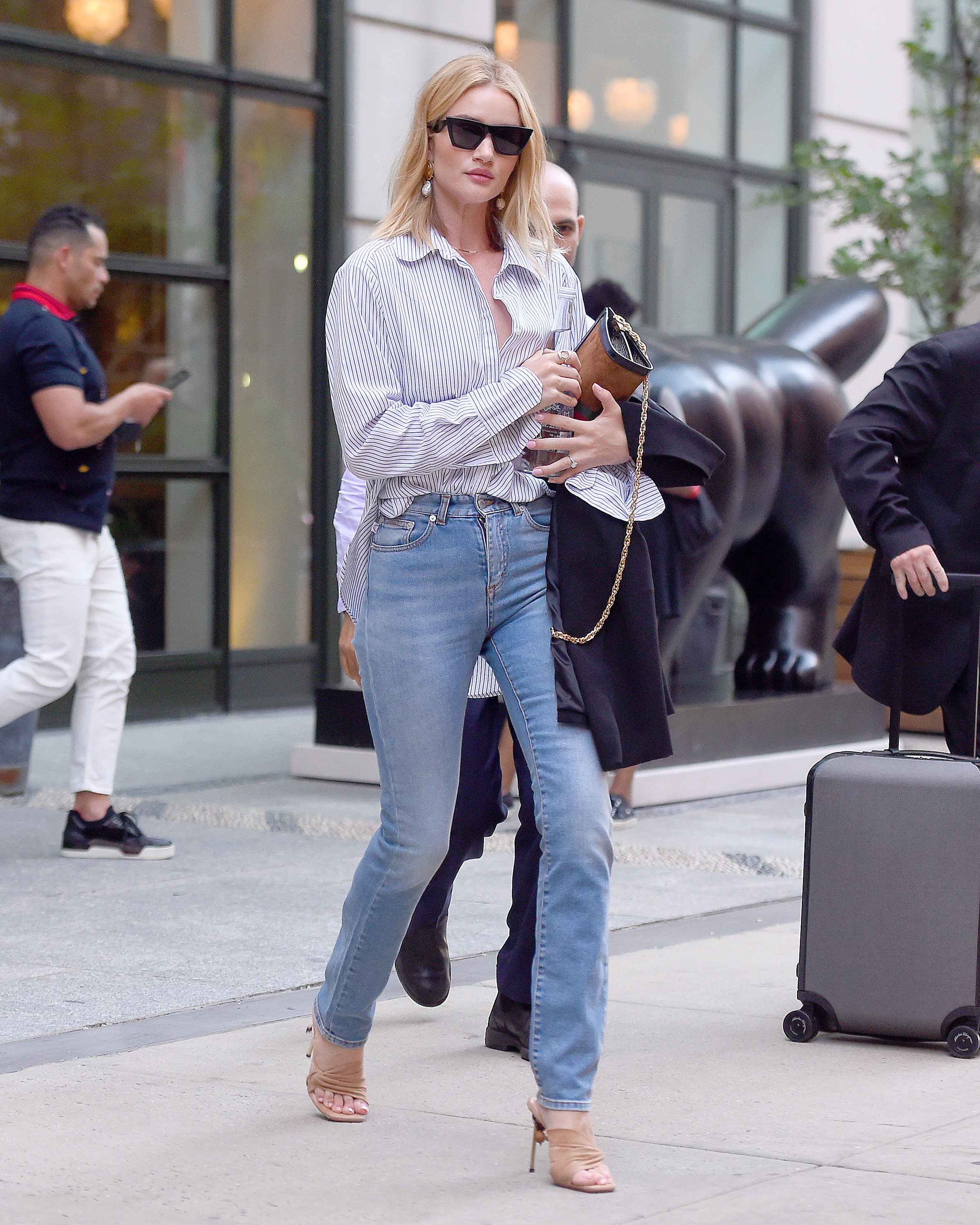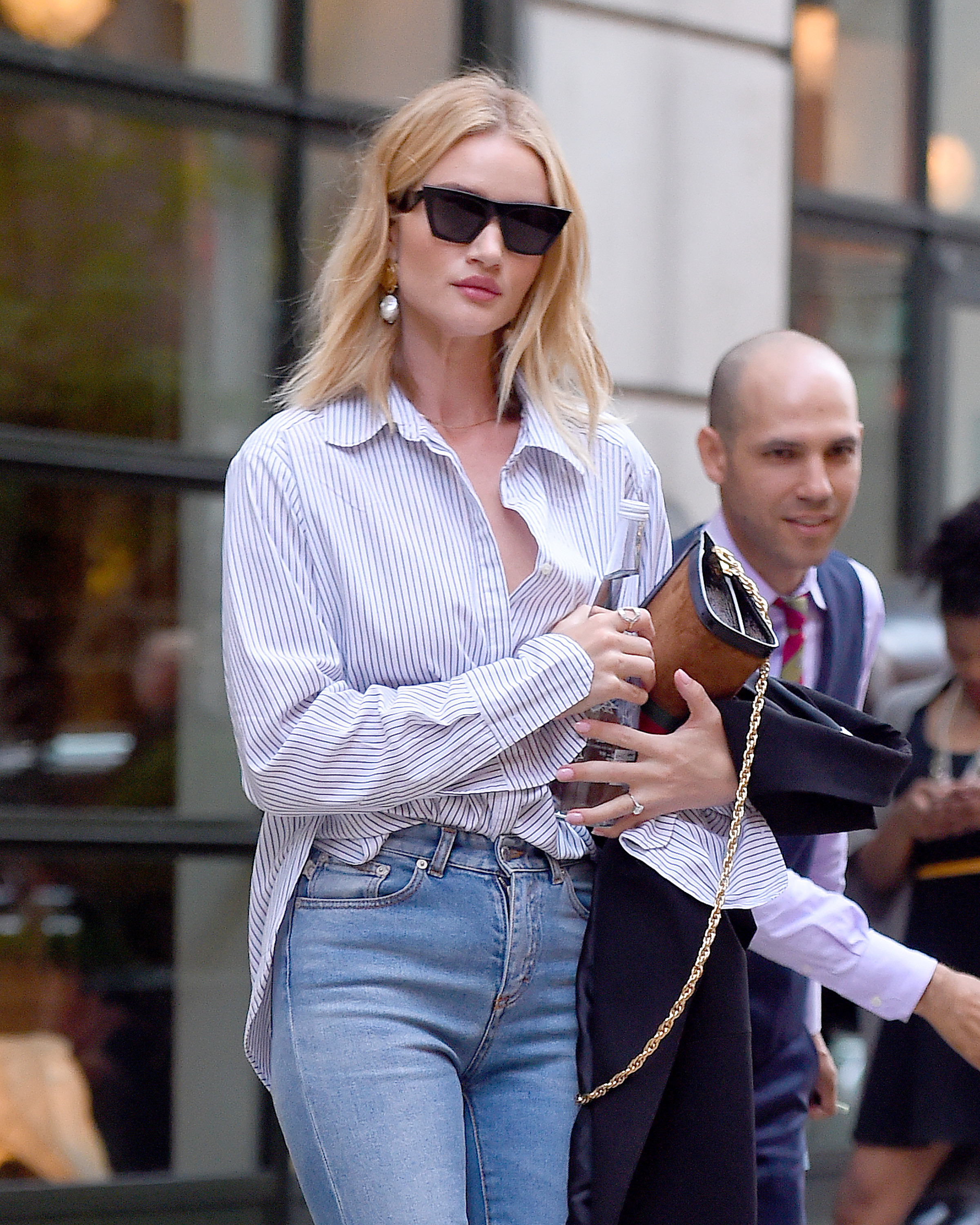 Rosie Huntington-Whiteley was spotted out and about wearing sunglasses and blue jeans in New York 18 July 2018.