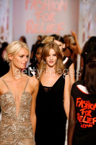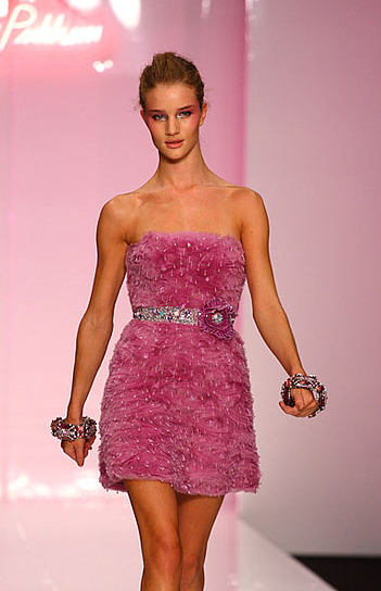 Sporting a gorgeous sage green dress by Burberry Prorsum and sparkling jewels by Garrard, beautiful model Rosie Huntington Whiteley really hammed it up for the cameras and looked to be having a ball on the catwalk. Our eyes were on her boyfriend Tyrone Wood, though, whose face literally lit up every time she hit the runway. Ah!