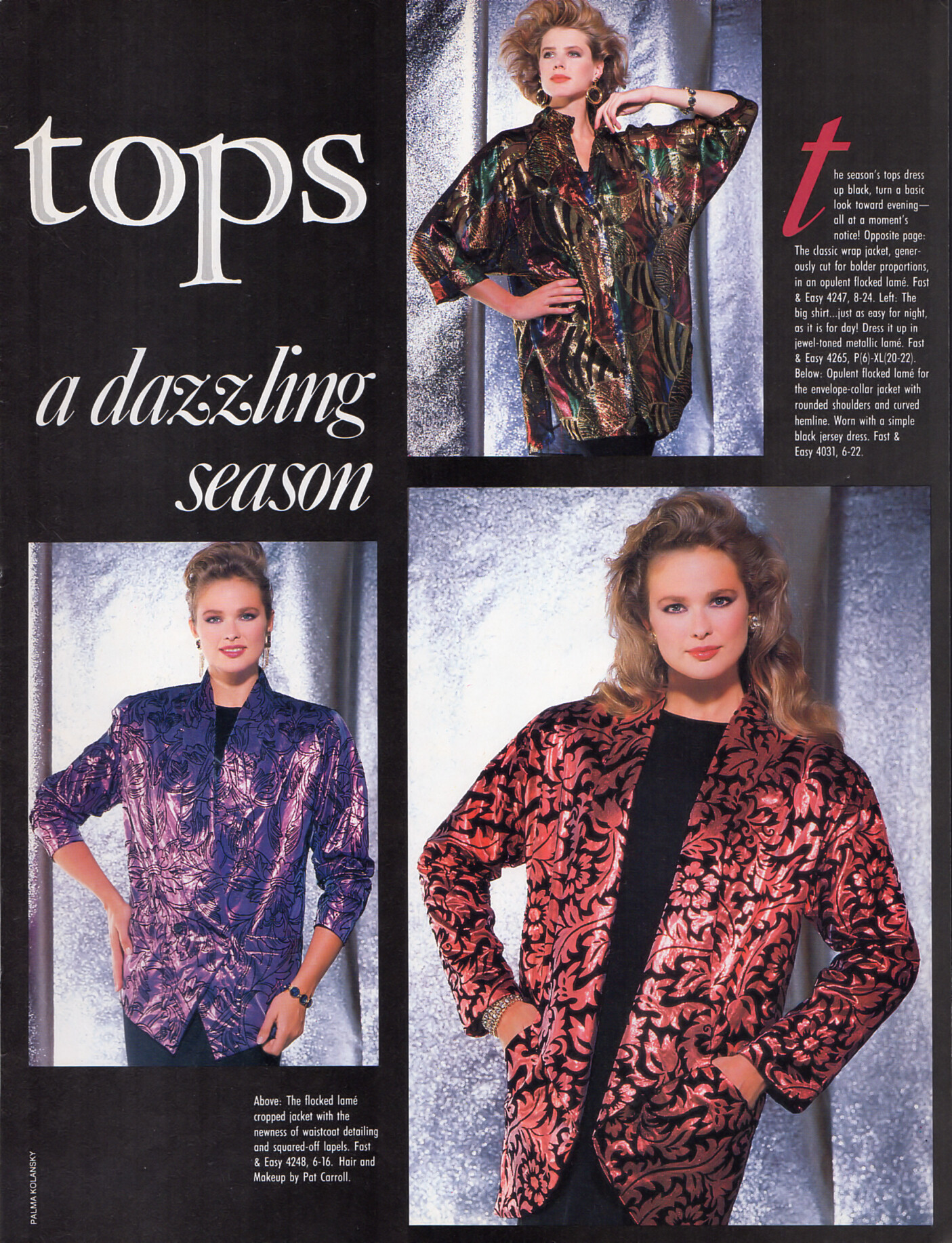 "the new tops a dazzling season" - BUTTERICK U.S. Winter/Holiday 1986 by Palma Kolansky - also showing Terri May, unknown