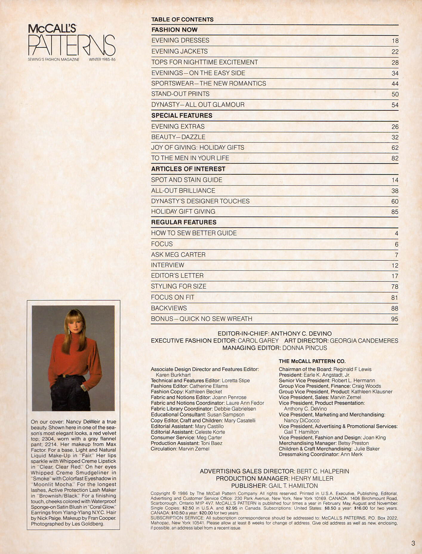 cover + cover-look Mc Call´s Patterns U.S.Winter 85-86 by Les Goldberg