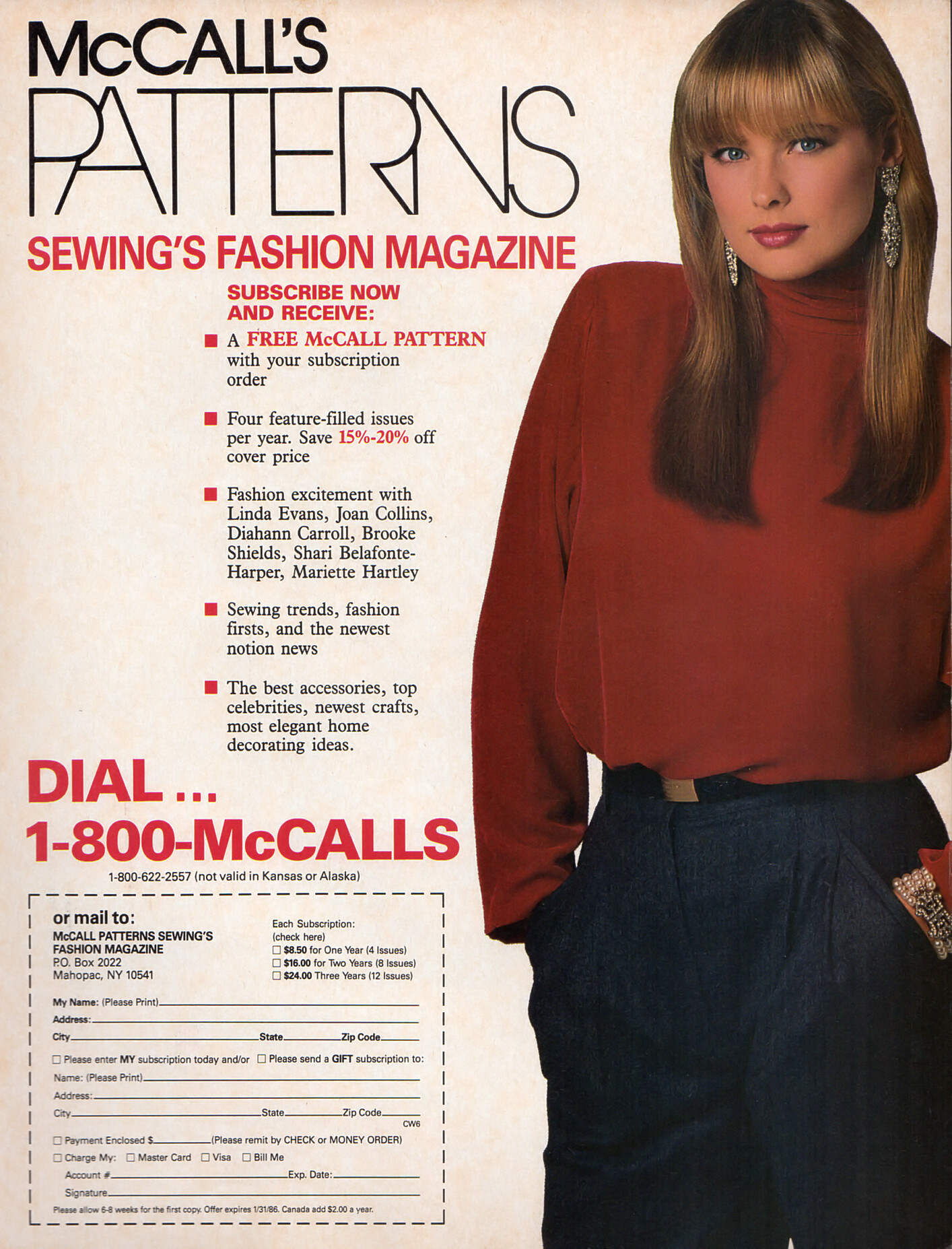 Mc CALL´S PATTERNS subscribing advertisement - Mc CALL´S PATTERNS U.S. Winter 85-86 by Gideon Lewin