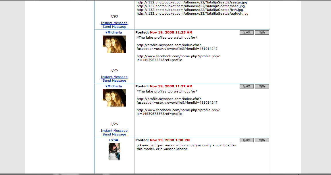 Oh, and, just because I wanted to find out for myself, I look through her fotolog, and alll the pics on there are old, she hasnt logged on in a really long time, and none of the pictures that she has put has her main photo or that pictures that were on that screen captures are on the fotolog either. They all look like her personal, private photos and all recent....thats just my observation though.
