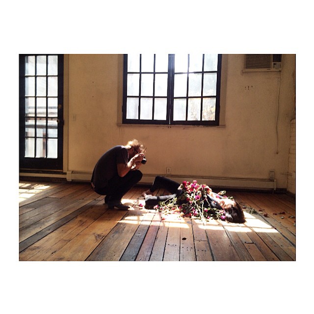 "mallorypassuite spring sunlight and a dozen dead roses #behindthescenes @johanlindeberg and @iosonomariacarlaboscono at work in #williamsburg this week #blkdnm #mariacarlaboscono #johanlindeberg"