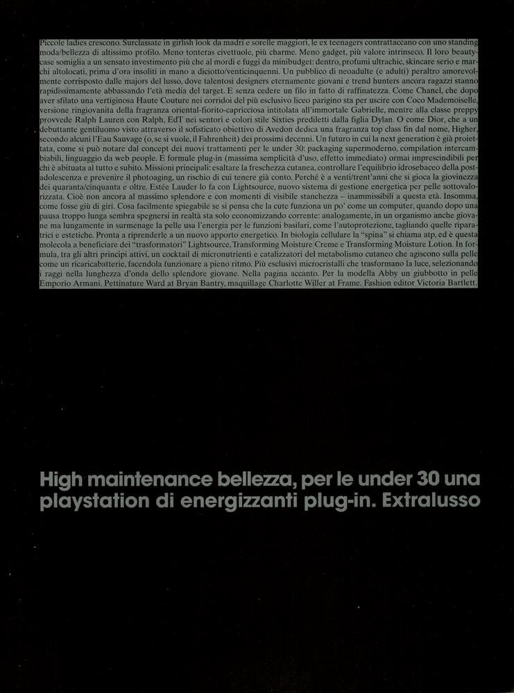 Vogue Italia August 2001 ''Beyond The Image'' Photographer: Thomas Schenk Models: Abbey Shaine, Mariacarla Boscono, Amanda Brown, Fanni Boström, Marcelle Bittar, Kae Lee Iwakawa