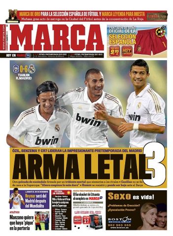 In a short talk with Spanish newspaper "As", Karim Benzema talked about his relationship with Cristiano Ronaldo and Mesut Ozil and pointed that, as one of the factors that have helped him improving his performances from last season. Benzema: "Me, Ronaldo and Ozil are really good friends off the pitch and that helps us when we're playing together. That's exactly what I need to keep playing like I've been doing. We take advantage of fast plays that we manage to combine in tight spaces. The ball gets passed very quickly."