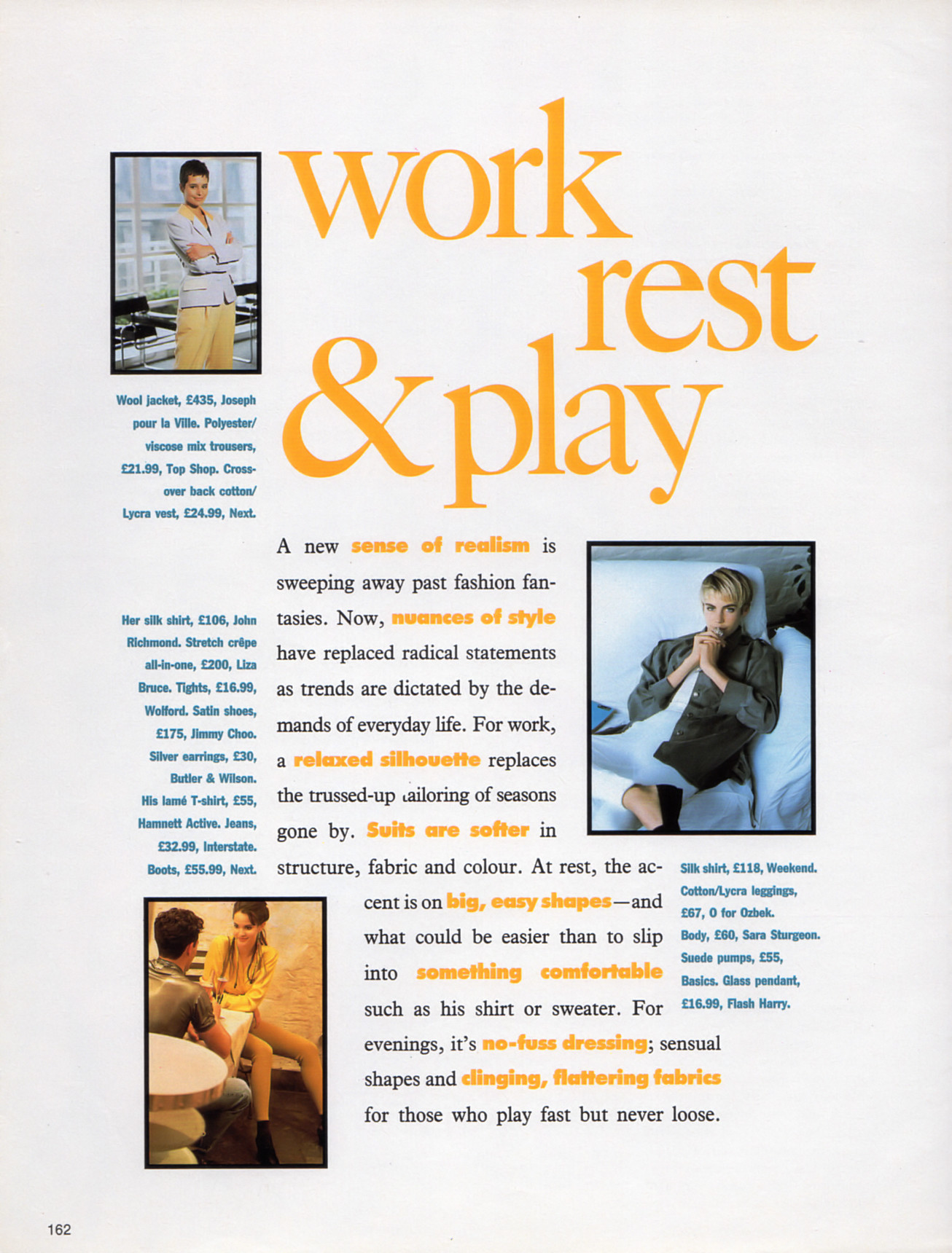 "work rest & play" - COSMOPOLITAN U.K. April 1990 by David McIntyre, Avi Meroz, Tim Bret-Day - also showing Sophia Goth, unknown