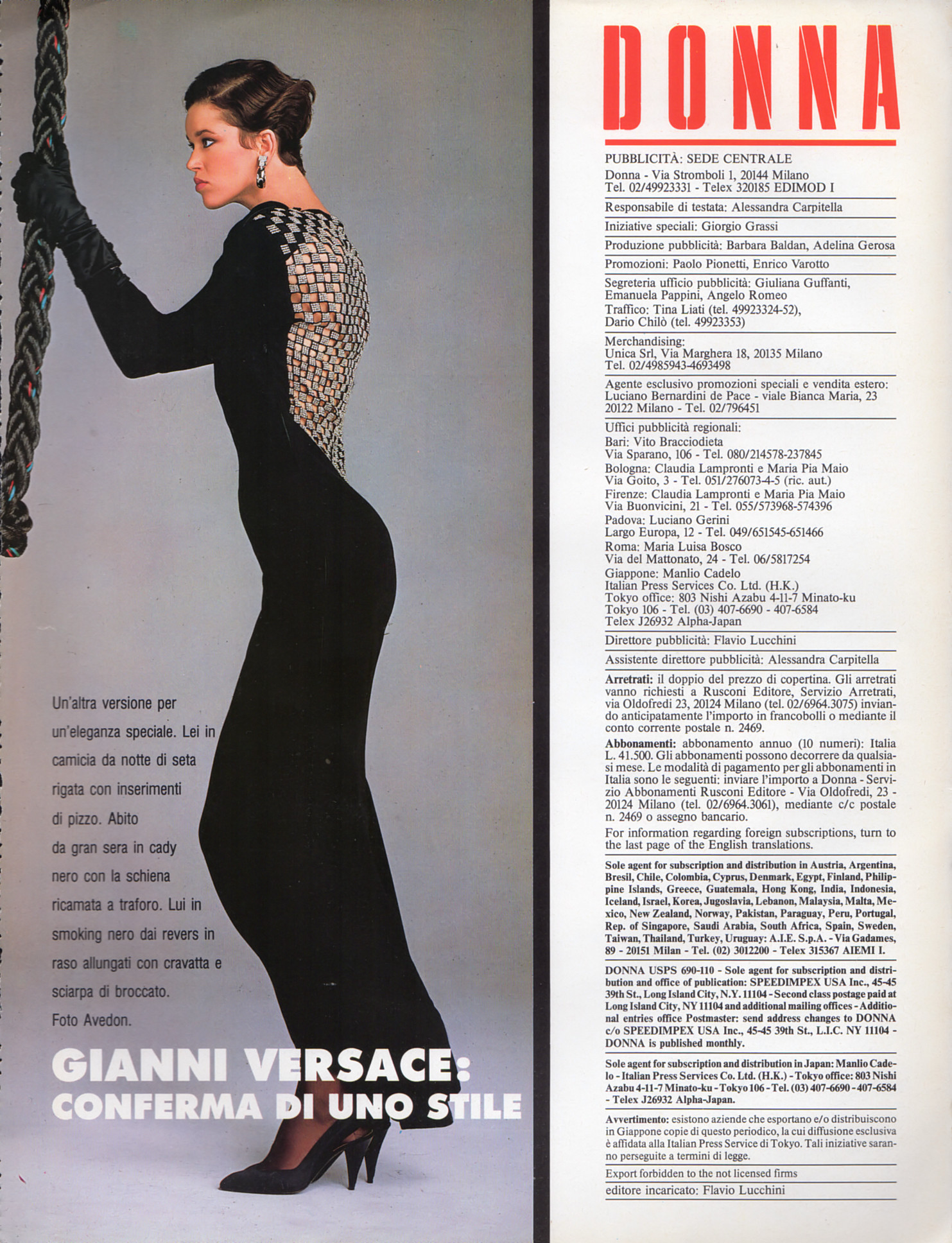 GIANNI VERSACE advertisement - DONNA Italy November 1986 #69 - also showing unknown