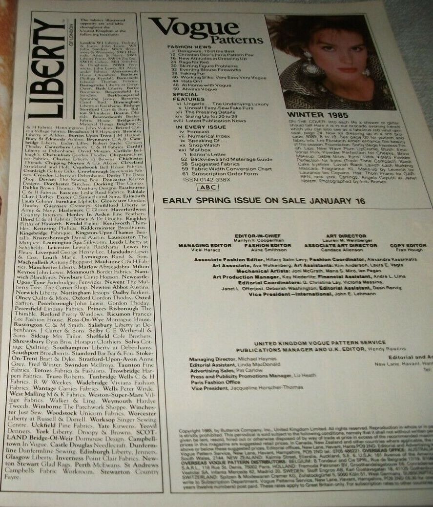 cover + cover-look Vogue Patterns U.K. Winter 1985 by Eric Boman