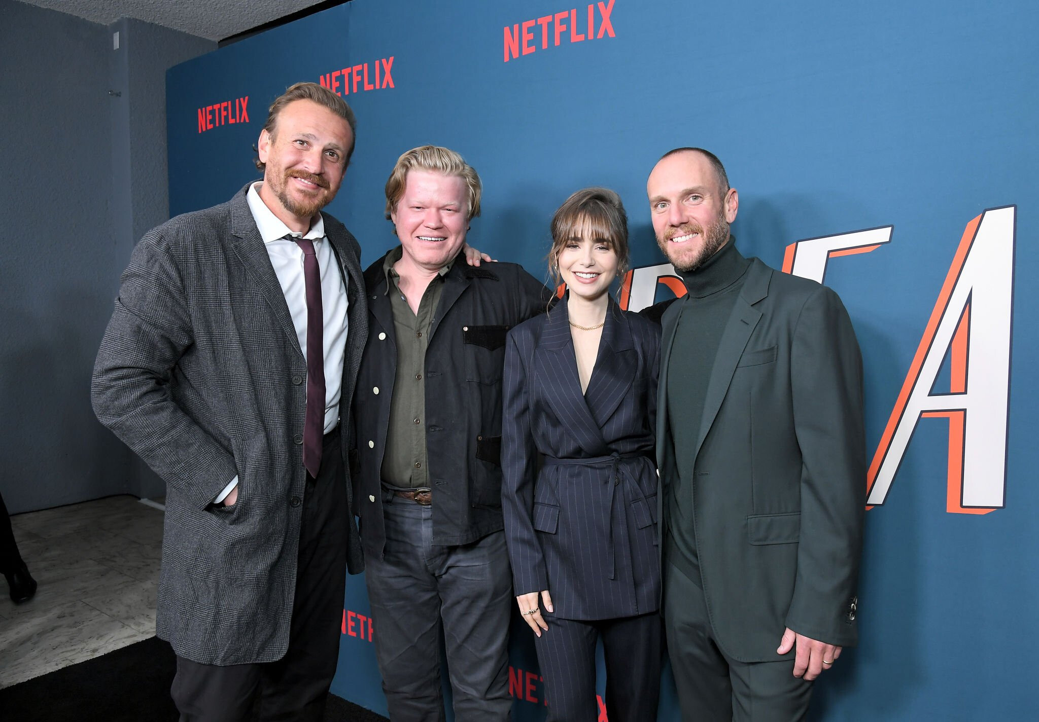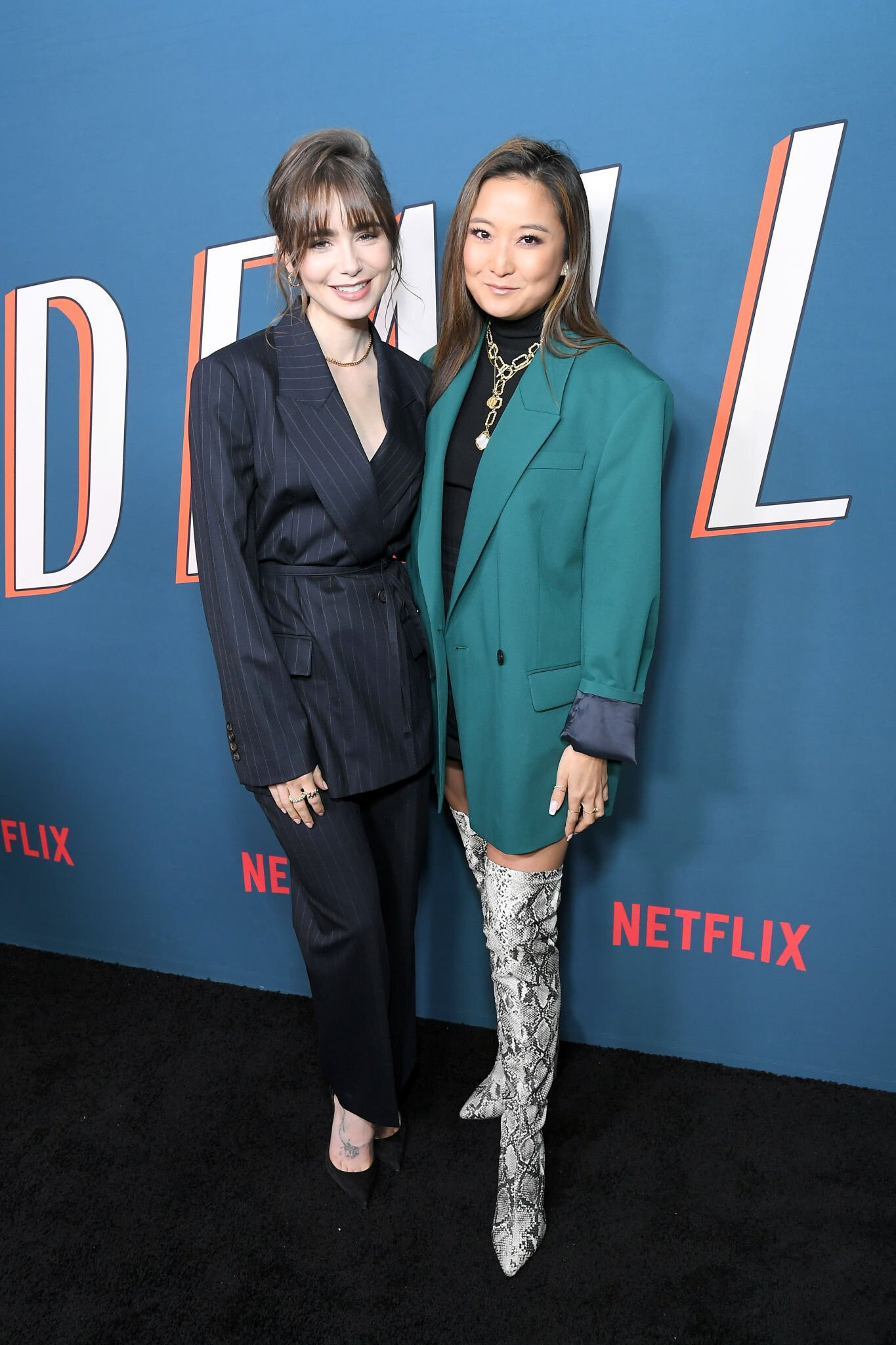 Lily Collins in a Fashionable Red Pantsuit - New York 03/23/2022