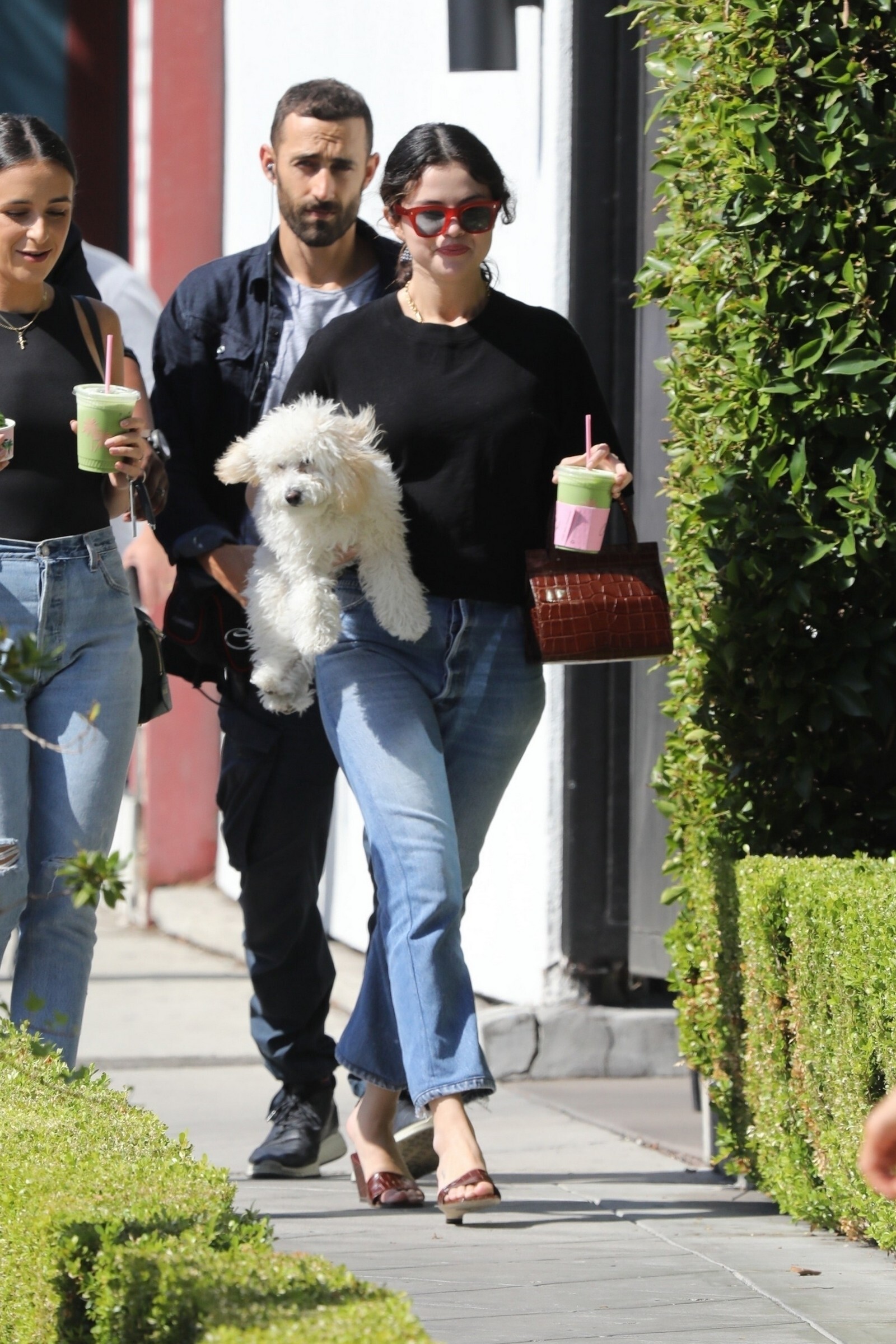 Selena Gomez leaving a "Shark Tank" filming studio with her puppy in West Hollywood, 9/23/2019