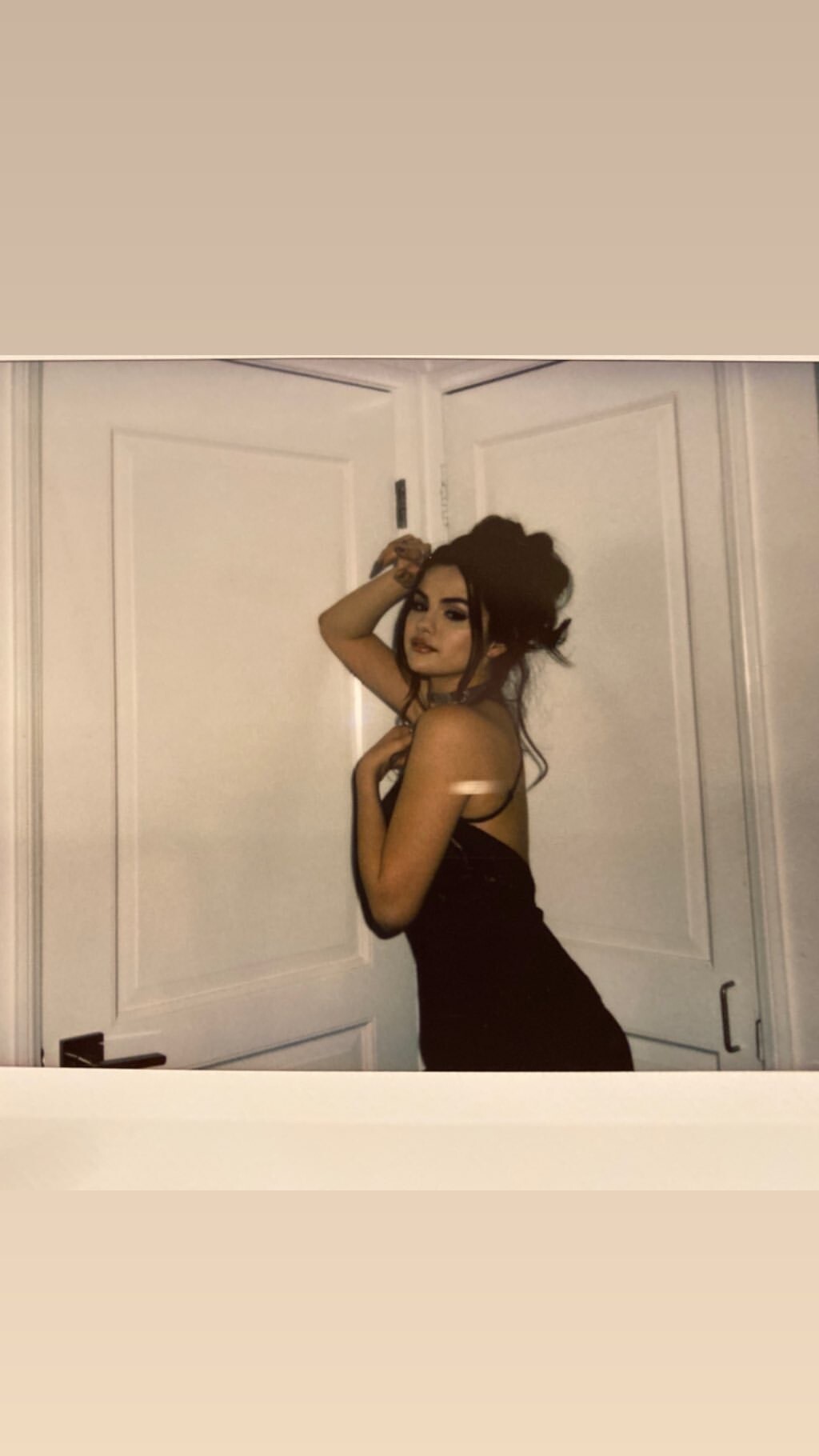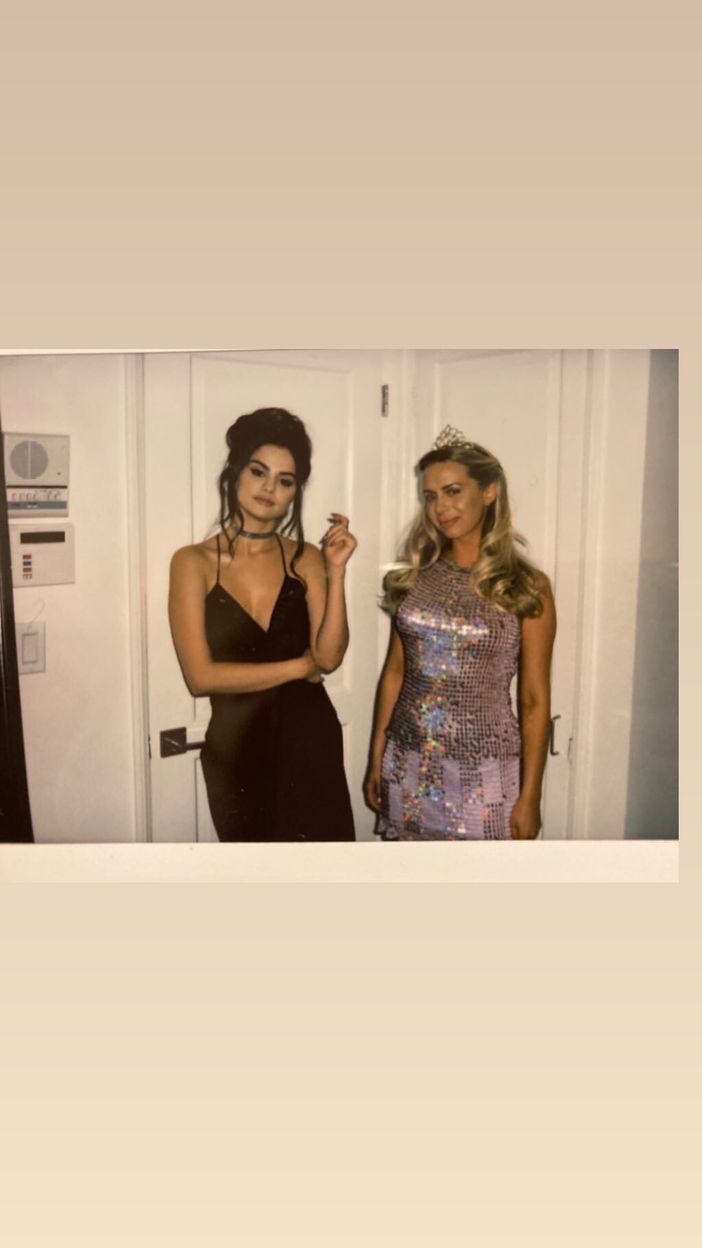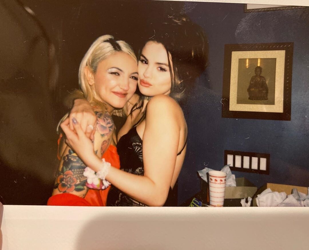 Selena Gomez in Red and White Striped Dress 24/10/2019