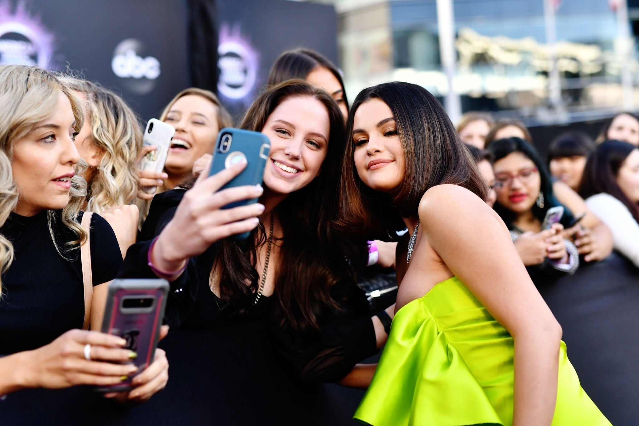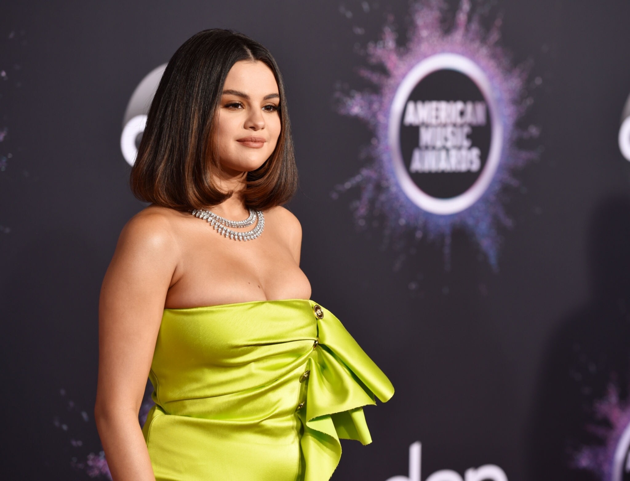 Selena Gomez in Neon Green Mini Dress with Stilettos, AMA 24/11/2019