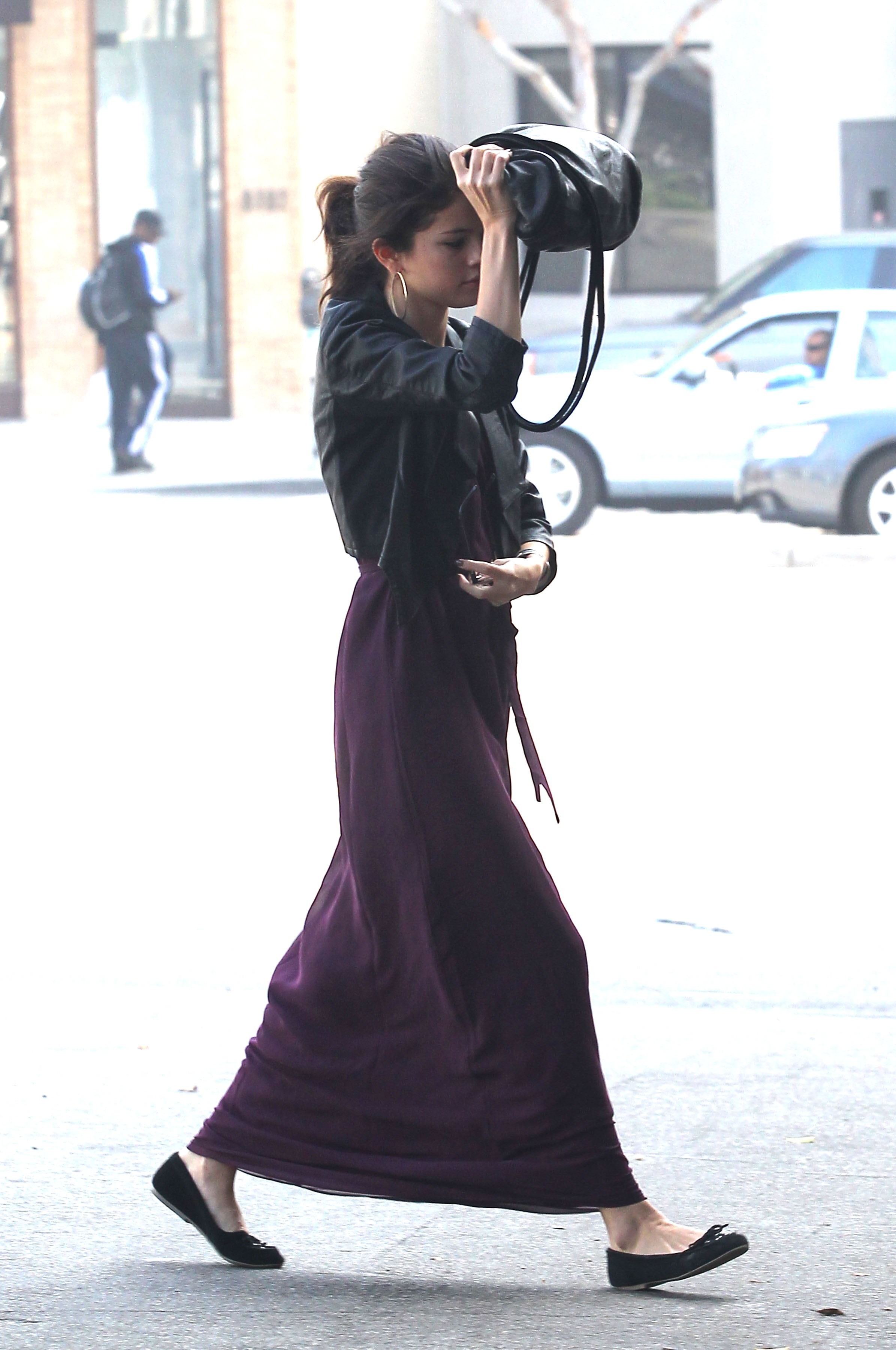 Selena Gomez rushes her puppy Baylor back to the car after a quick pit stop at a local park on Monday (October 31) in Los Angeles.