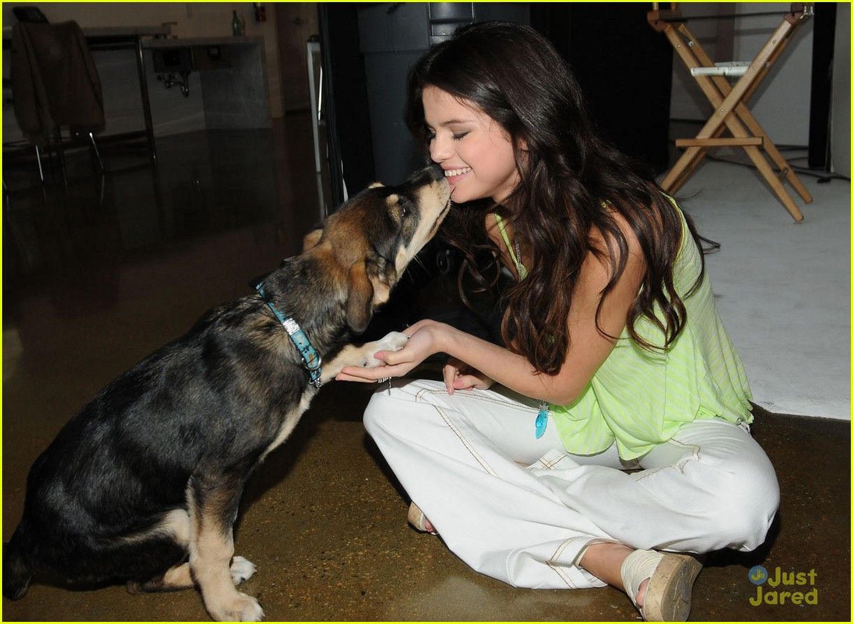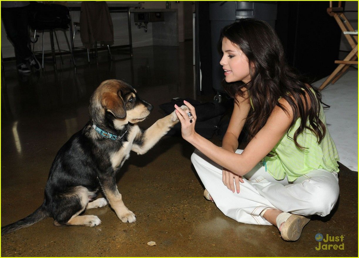 Selena Gomez plays around with new pup Baylor during her lunch break for her Dream Out Loud clothing line in Los Angeles on Tuesday afternoon (November 15).
