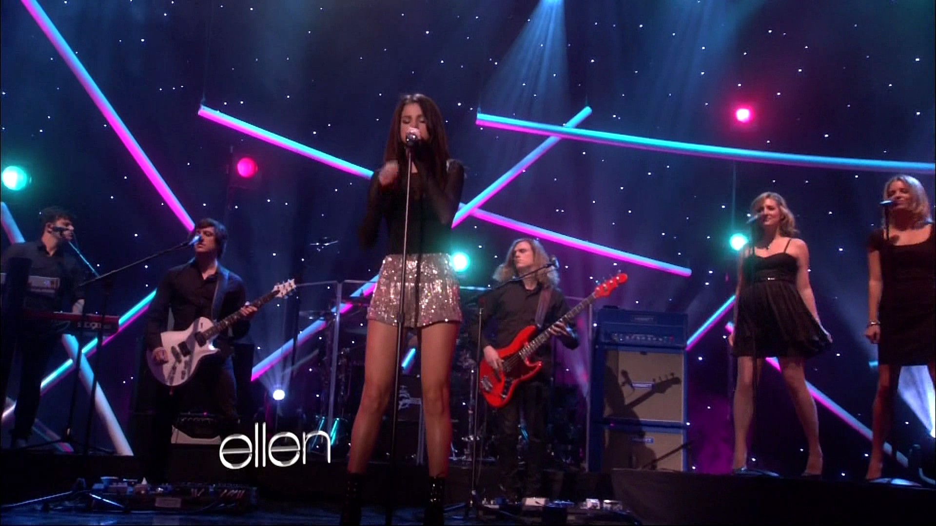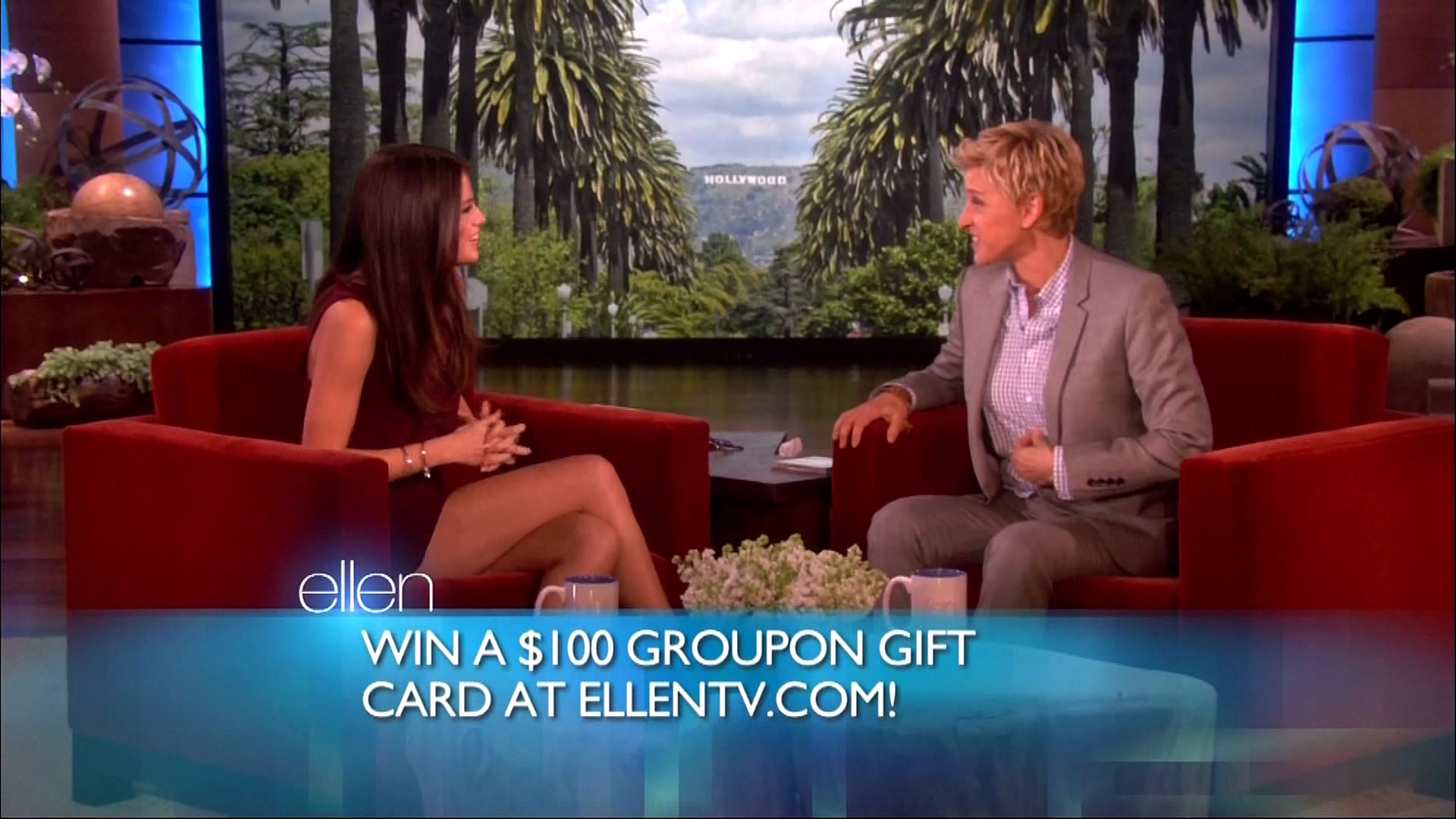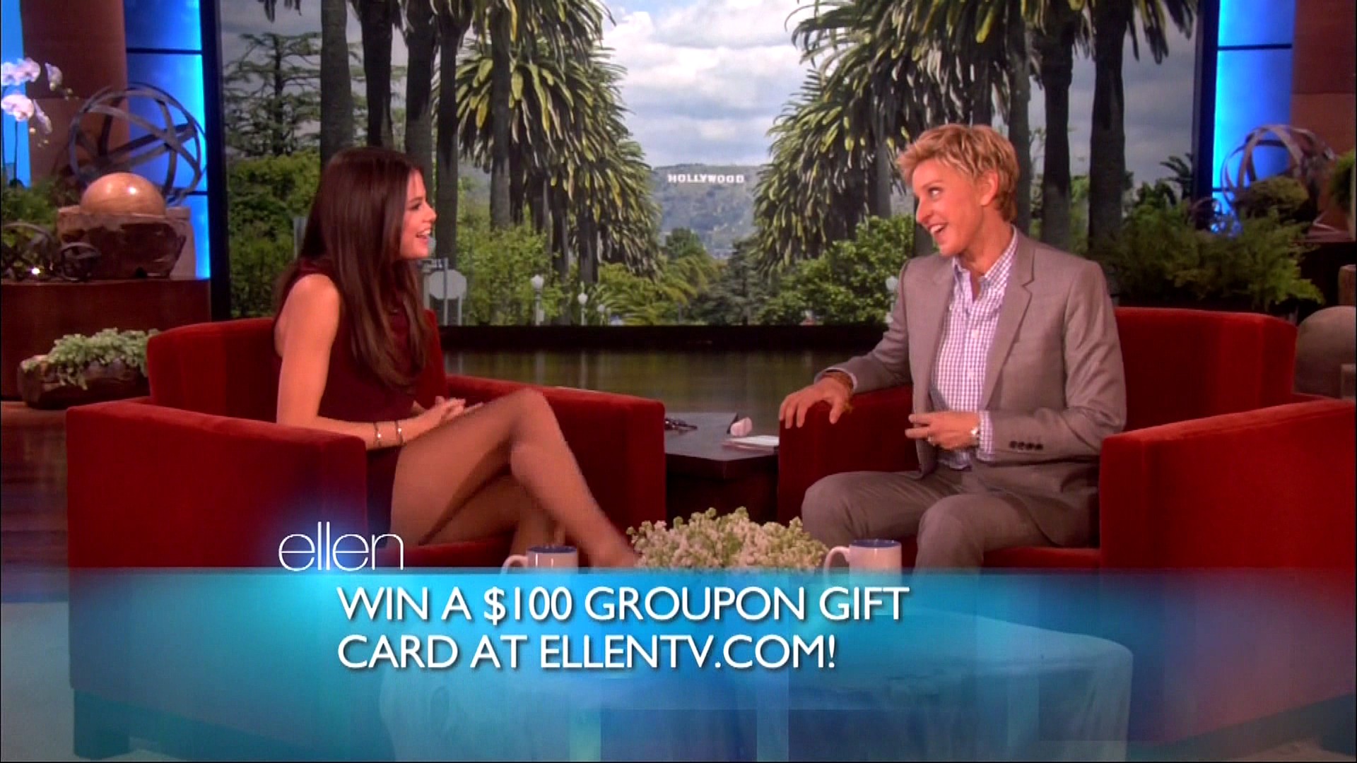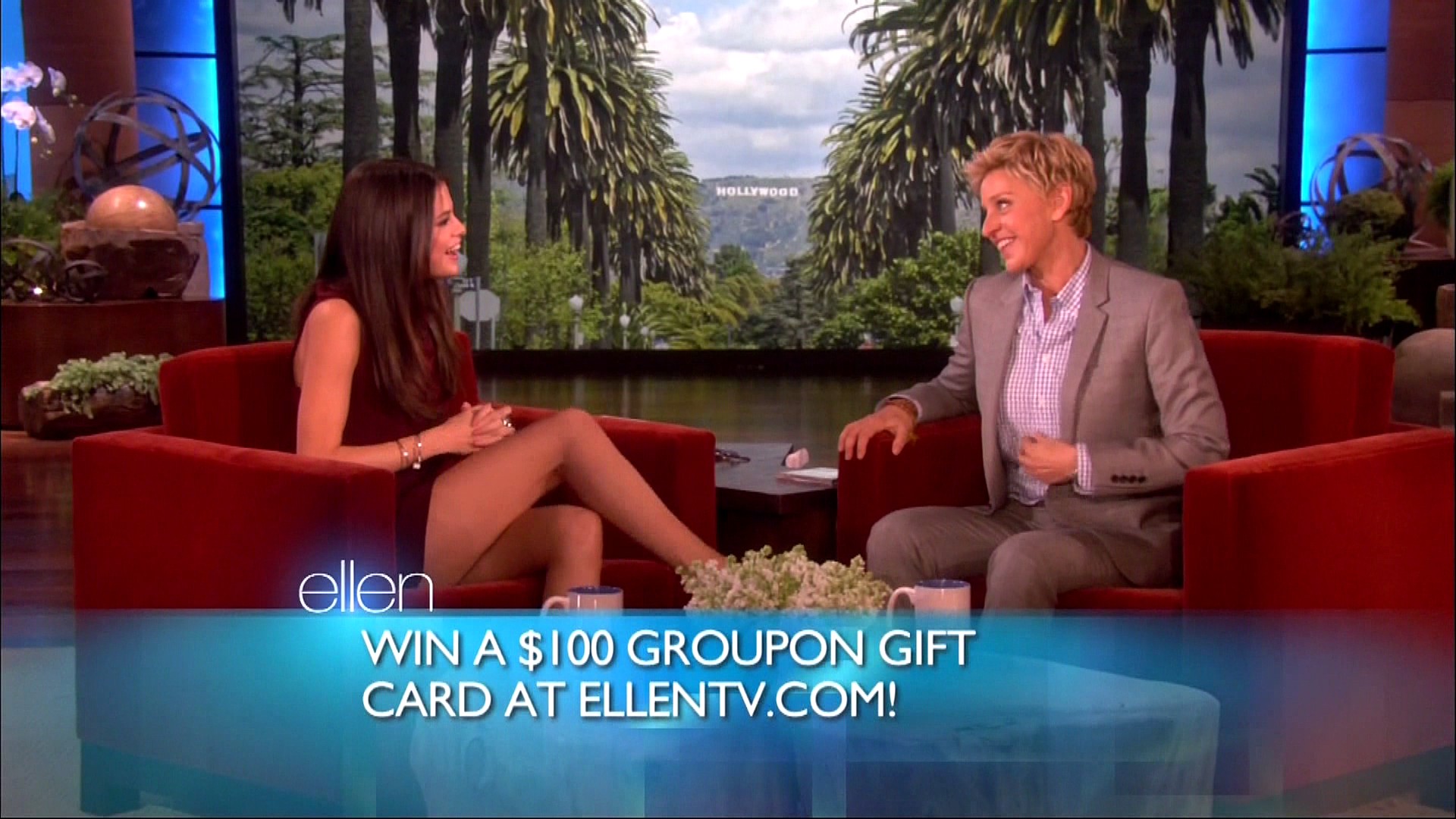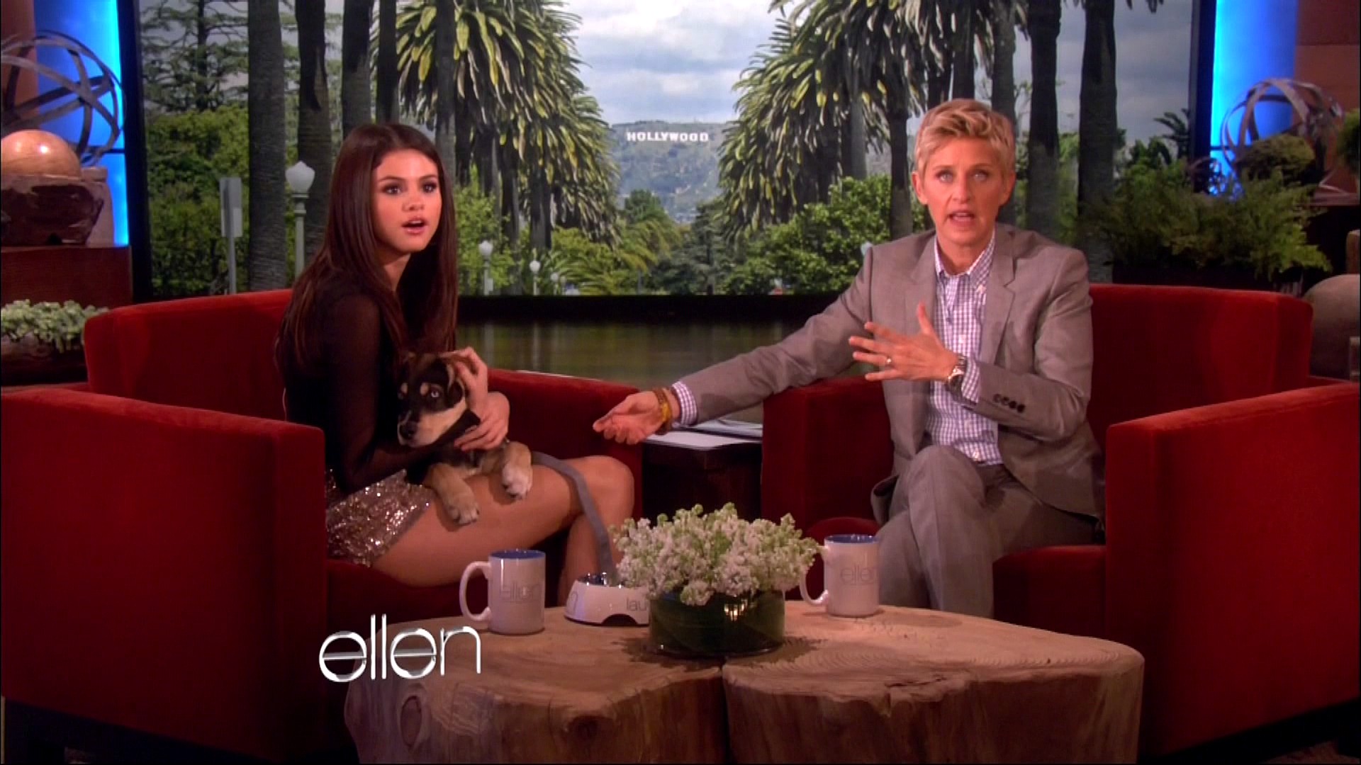 Selena also stopped by Ellen to chat with the hostess about a lot of important things — Justin Bieber’s pants.