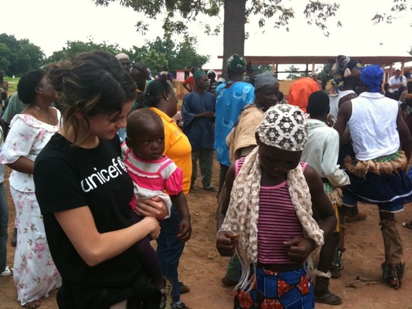 In hopes of keeping her fans updated and opening their eyes to the ways in which the children of Ghana live, Selena tweeted a bunch of photos from her trip so far. Says the star: “ got a lesson in how to dance, then we flew to Tamale, Ghana to visit kids who told us about how UNICEF is helping them. I also went to visit a tribe where the women gifted me with an outfit they hand made. Then I got to hold a new born baby.”
