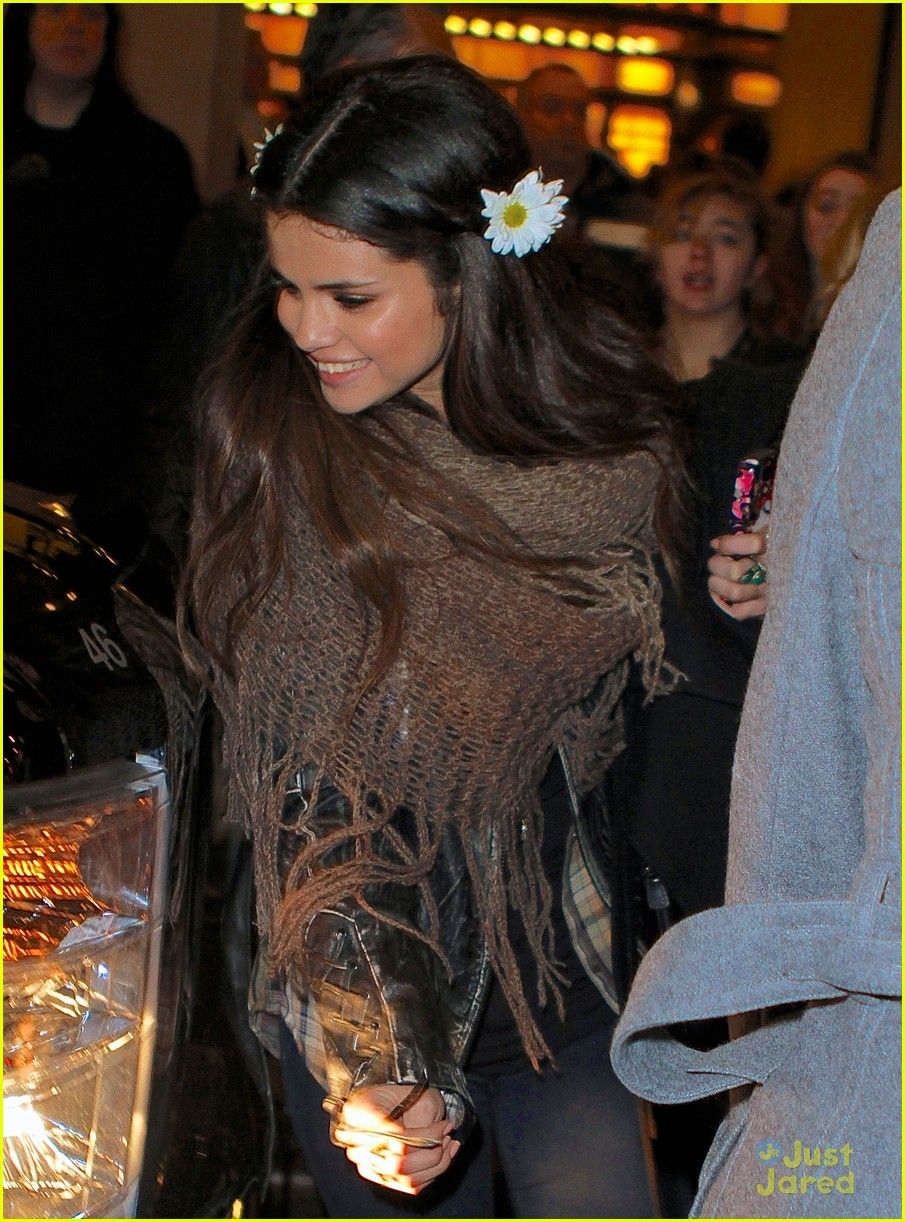 Selena Gomez wears a few daisys in her hair as she leaves the Best Buy Theatre in New York City on Saturday night (January 19).