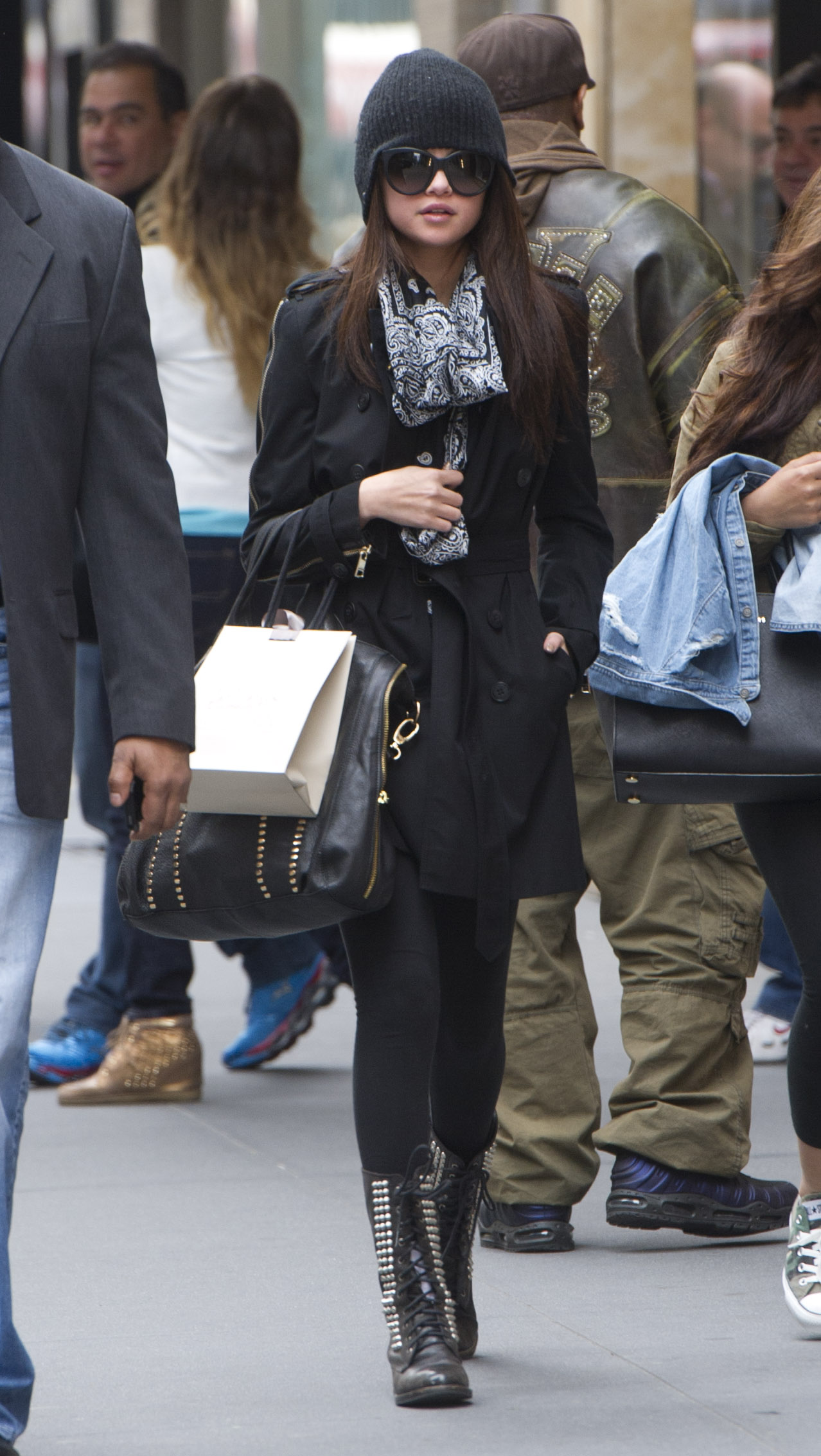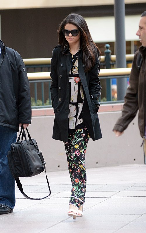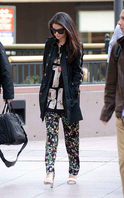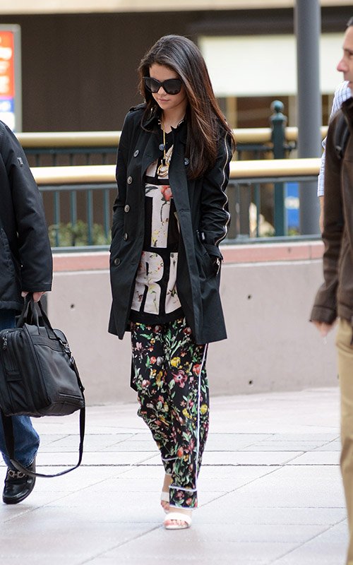 Selena Gomez tries to keep a low profile while making her way through Los Angeles International Airport on Thursday night (April 25) in Los Angeles.