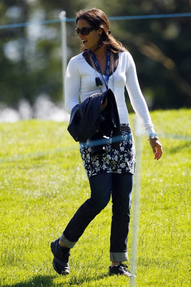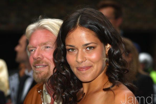 I see billionare Richard Branson in those photos. He always ends up tossing a beautiful woman over his shoulder at photo ops... too bad he didn't do that to leggy Ana! ![]()