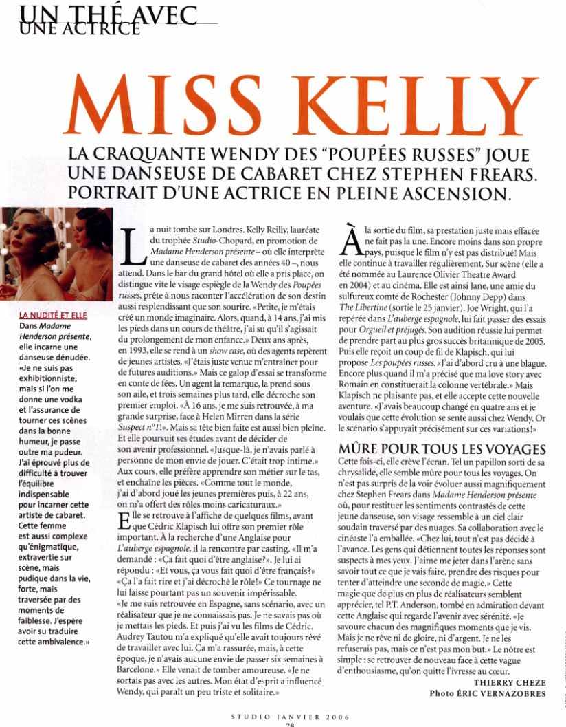 Kelly Reilly (born 18 July 1977) is an English actress who, in 2004, became the youngest ever "best actress" nominee at the Olivier Awards[1], a position she now shares with Anna Maxwell Martin.