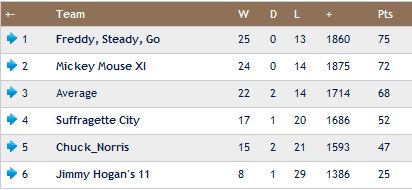 I'm hoping Mr. Average does one over Freddy next week! If I can beat ...ummm*muttersindistinguishablenameunderbreath* then I have a chance of pipping him of "GD"