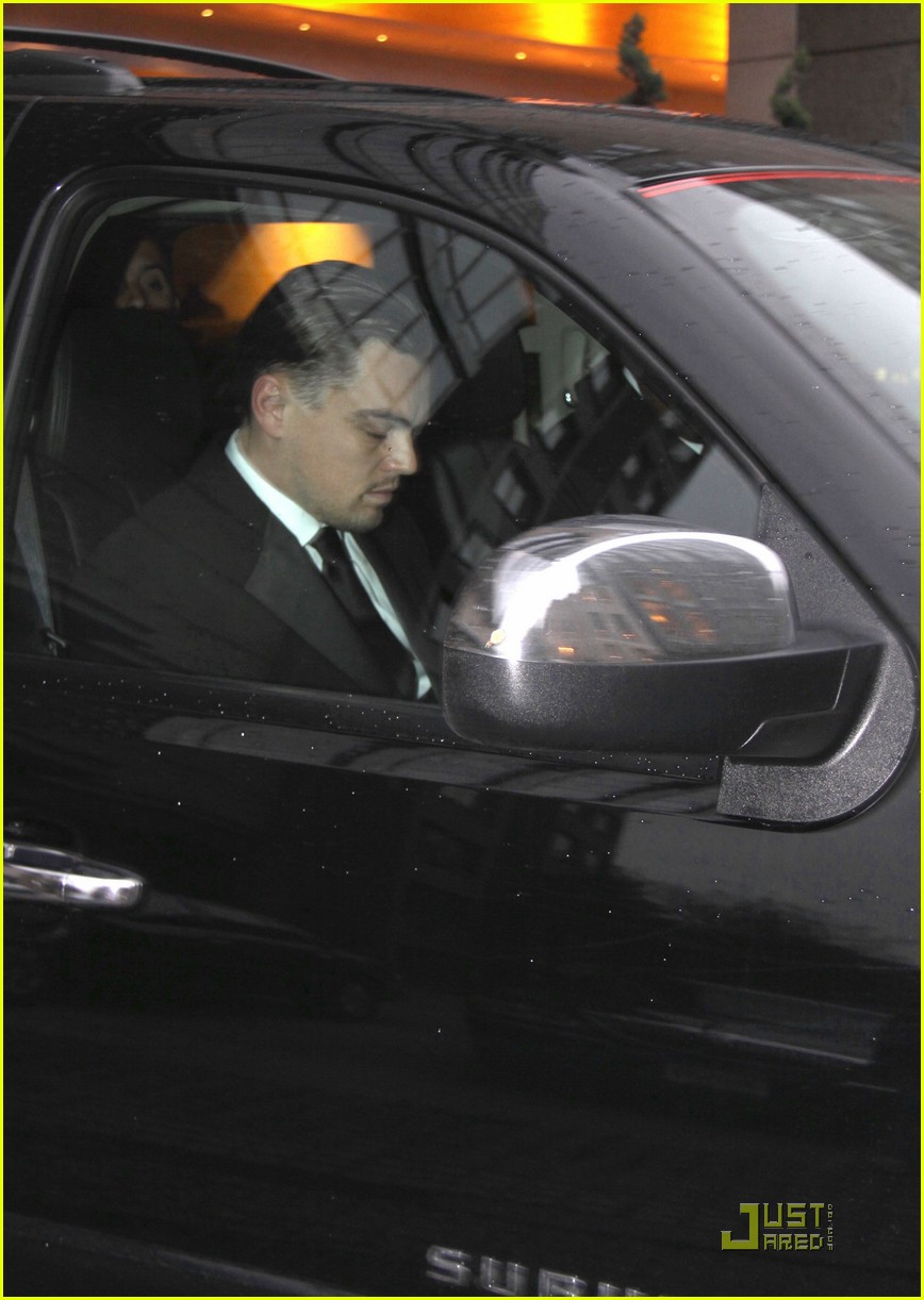 Leonardo DiCaprio leaves his hotel in the passenger seat of a SUV on Friday (April 8) in Washington, D.C.